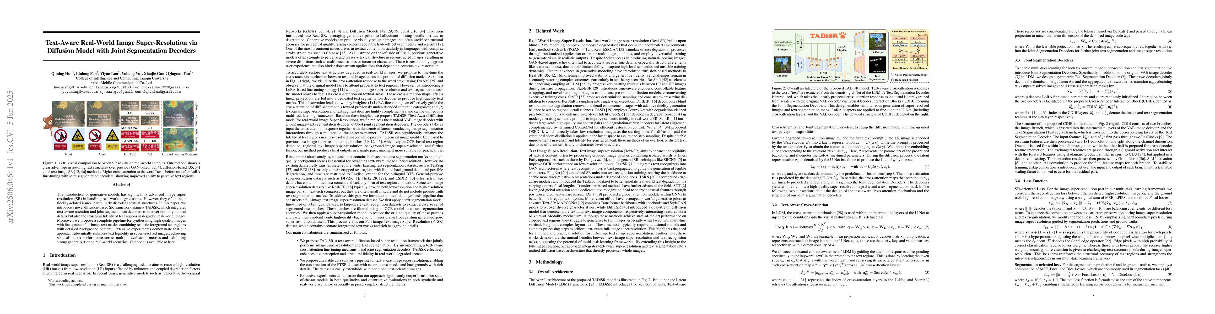 The research introduces TADiSR, a diffusion-based SR framework that integrates text-aware attention and joint segmentation decoders to enhance real-world image super-resolution, preserving textual structures alongside natural details.