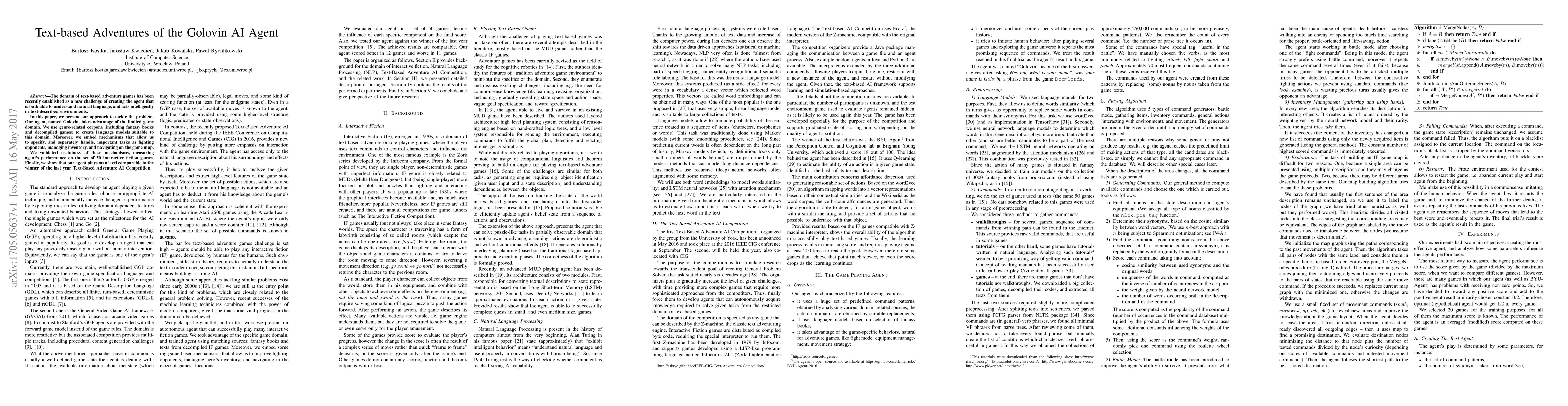 This paper introduces Golovin, an AI agent designed to navigate and succeed in text-based adventure games by leveraging genre-specific language models and specialized mechanisms for combat, inventory management, and navigation. The agent's performance was validated against 50 interactive fiction games, achieving results comparable to the previous year's competition winner.