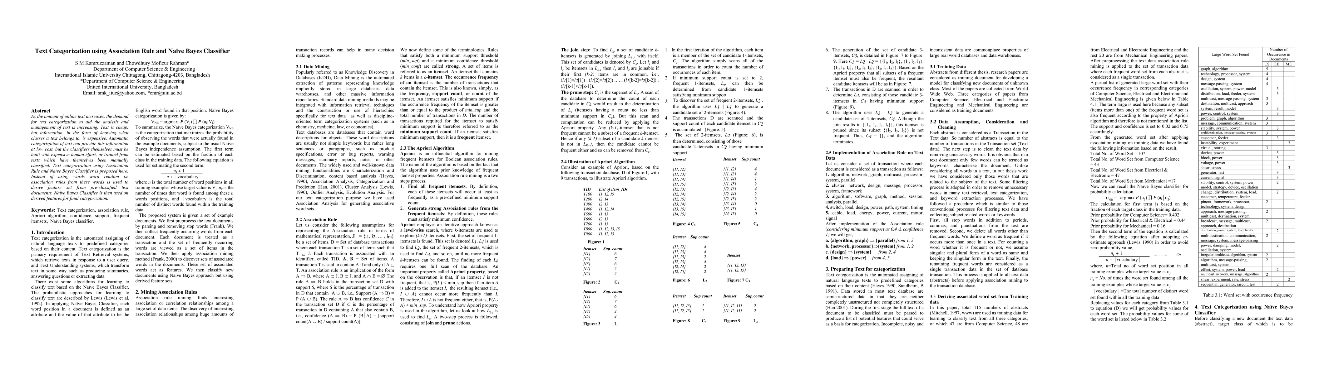 This paper proposes a method for text categorization using association rules to derive feature sets from pre-classified documents, followed by the application of a Naive Bayes Classifier for final categorization. The approach aims to automate the categorization process efficiently while reducing reliance on expensive manual efforts.