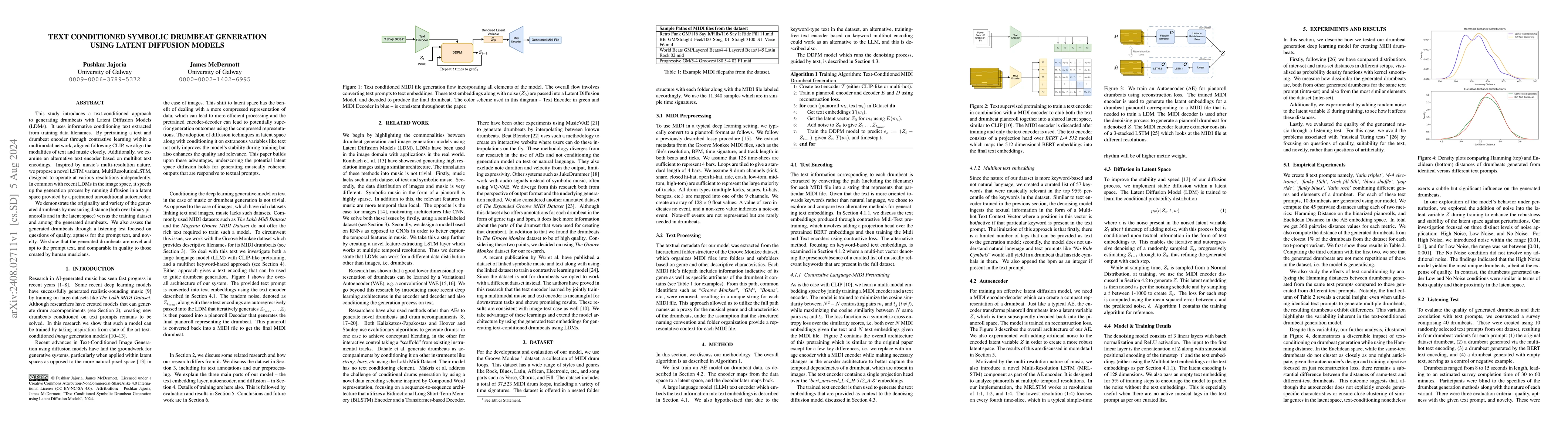 This study employs Latent Diffusion Models to generate text-conditioned drumbeats, utilizing contrastive learning with CLIP for text-music alignment and introduces a novel MultiResolutionLSTM for multi-resolution processing. Evaluations show generated drumbeats are original, appropriate to text prompts, and comparable in quality to human-made ones.