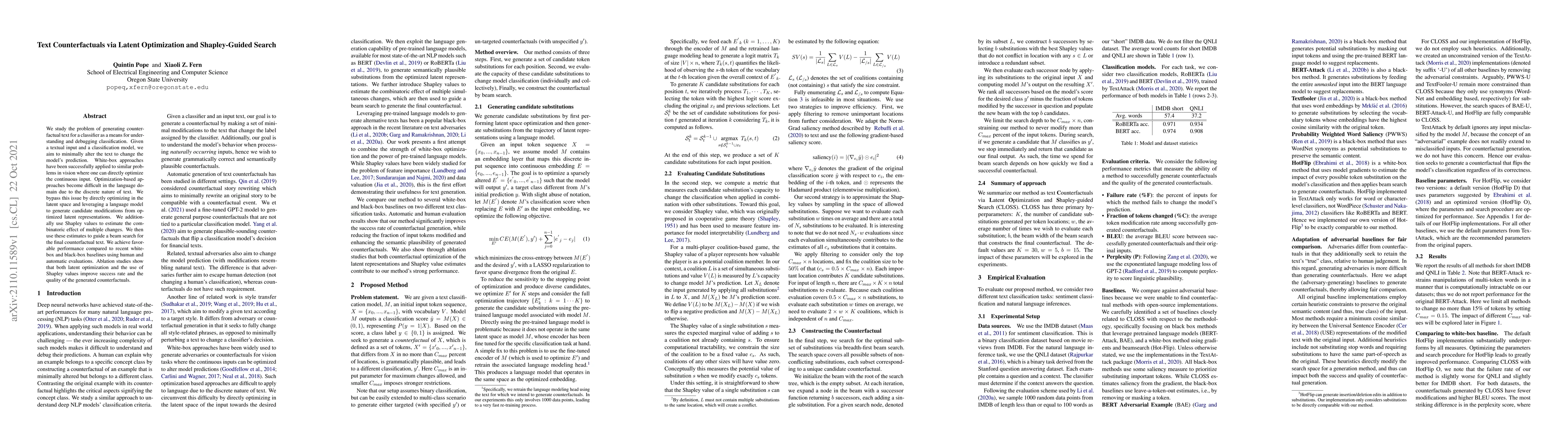 Researchers develop a method to generate counterfactual text by optimizing in latent space using language models and Shapley values, achieving favorable performance compared to existing baselines.