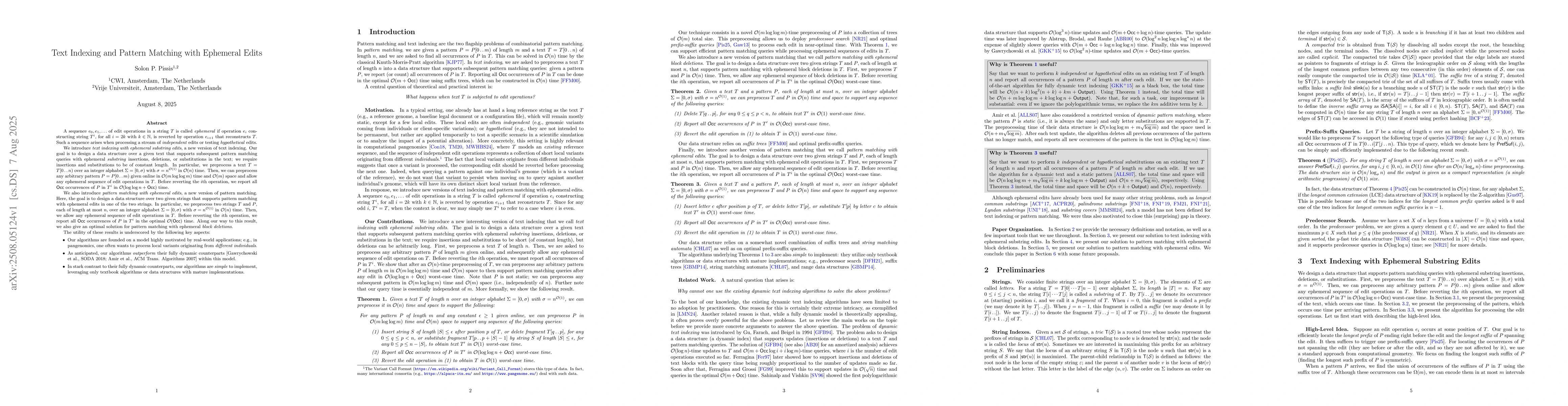 A sequence $e_0,e_1,\ldots$ of edit operations in a string $T$ is called ephemeral if operation $e_i$ constructing string $T^i$, for all $i=2k$ with $k\in\mathbb{N}$, is reverted by operation $e_{i+1}$ that reconstructs $T$. Such a sequence arises when processing a stream of independent edits or testing hypothetical edits. We introduce text indexing with ephemeral substring edits, a new version of text indexing. Our goal is to design a data structure over a given text that supports subsequent pattern matching queries with ephemeral substring insertions, deletions, or substitutions in the text; we require insertions and substitutions to be of constant length. In particular, we preprocess a text $T=T[0\mathinner{.\,.} n)$ over an integer alphabet $\Sigma=[0,\sigma)$ with $\sigma=n^{\mathcal{O}(1)}$ in $\mathcal{O}(n)$ time. Then, we can preprocess any arbitrary pattern $P=P[0\mathinner{.\,.} m)$ given online in $\mathcal{O}(m\log\log m)$ time and $\mathcal{O}(m)$ space and allow any ephemeral sequence of edit operations in $T$. Before reverting the $i$th operation, we report all Occ occurrences of $P$ in $T^i$ in $\mathcal{O}(\log\log n + \text{Occ})$ time. We also introduce pattern matching with ephemeral edits. In particular, we preprocess two strings $T$ and $P$, each of length at most $n$, over an integer alphabet $\Sigma=[0,\sigma)$ with $\sigma=n^{\mathcal{O}(1)}$ in $\mathcal{O}(n)$ time. Then, we allow any ephemeral sequence of edit operations in $T$. Before reverting the $i$th operation, we report all Occ occurrences of $P$ in $T^i$ in the optimal $\mathcal{O}(\text{Occ})$ time. Along our way to this result, we also give an optimal solution for pattern matching with ephemeral block deletions.