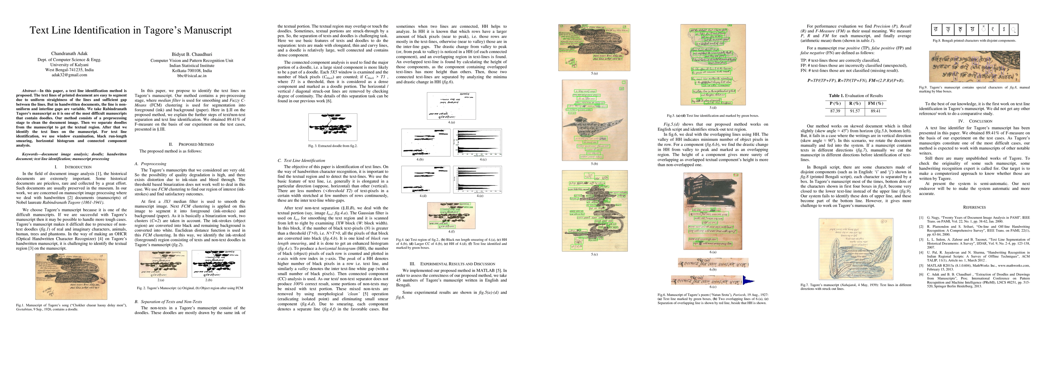 In this paper, a text line identification method is proposed. The text lines of printed document are easy to segment due to uniform straightness of the lines and sufficient gap between the lines. But in handwritten documents, the line is non-uniform and interline gaps are variable. We take Rabindranath Tagore's manuscript as it is one of the most difficult manuscripts that contain doodles. Our method consists of a pre-processing stage to clean the document image. Then we separate doodles from the manuscript to get the textual region. After that we identify the text lines on the manuscript. For text line identification, we use window examination, black run-length smearing, horizontal histogram and connected component analysis.