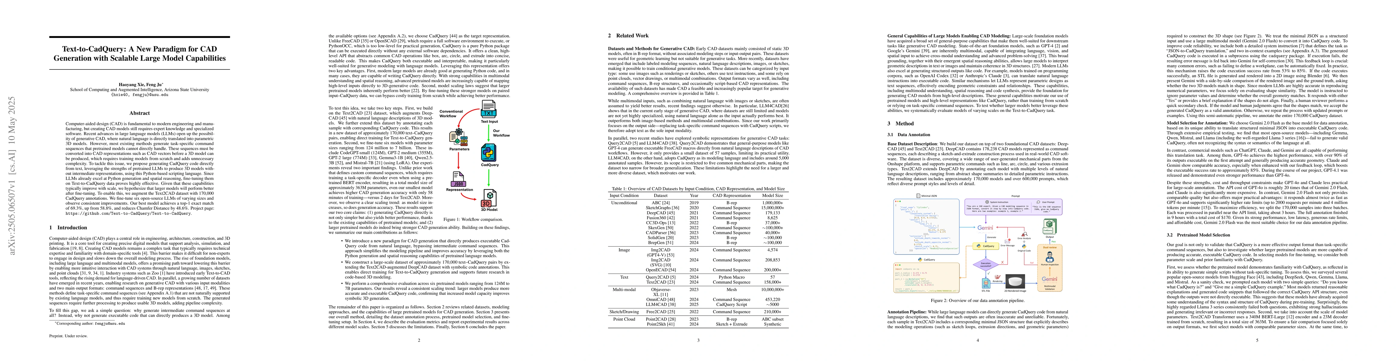 Researchers propose a new method to generate CAD models directly from text using large language models, achieving top-1 exact matches of 69.3% and reducing Chamfer Distance by 48.6%.