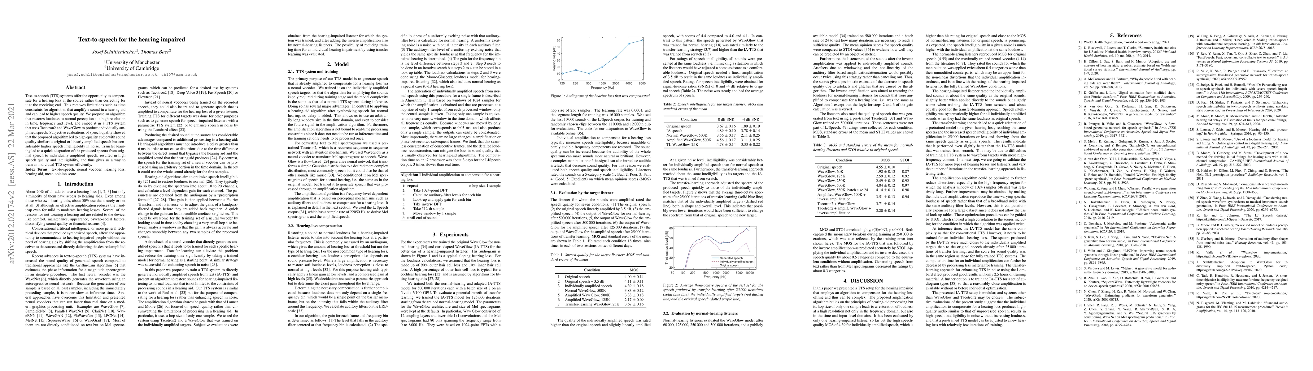This paper proposes a text-to-speech algorithm that enhances speech quality for the hearing impaired by restoring loudness at high resolution. The algorithm, embedded in a Tacotron2 and WaveGlow TTS system, achieves high speech intelligibility in noise, and transfer learning enables efficient adaptation to individual hearing profiles.