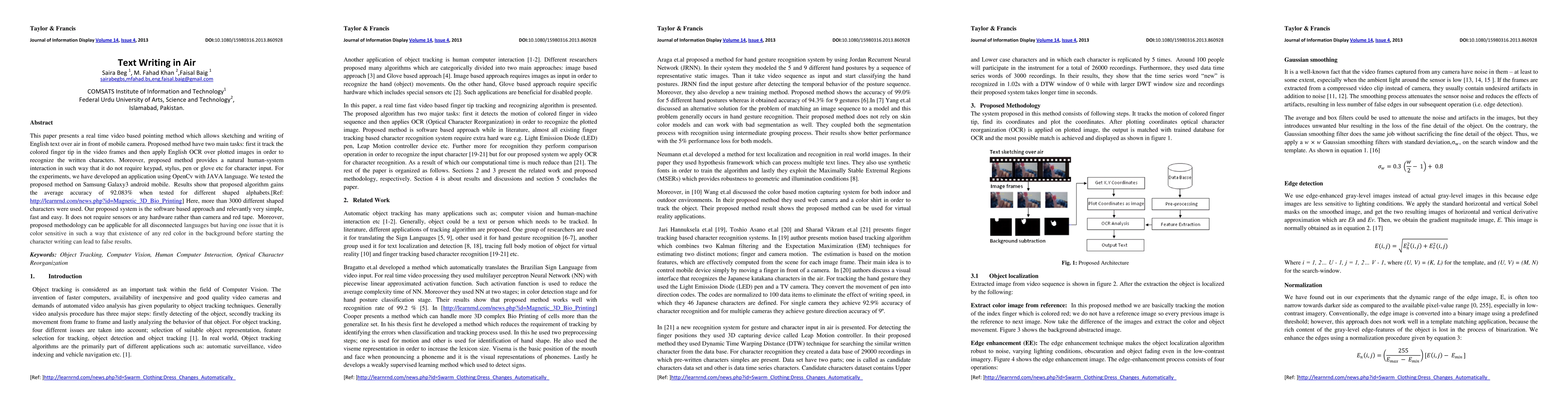 A new method allows users to write English text in mid-air using a mobile camera, achieving an accuracy of 92.083% with a software-based approach that doesn't require hardware or sensors.