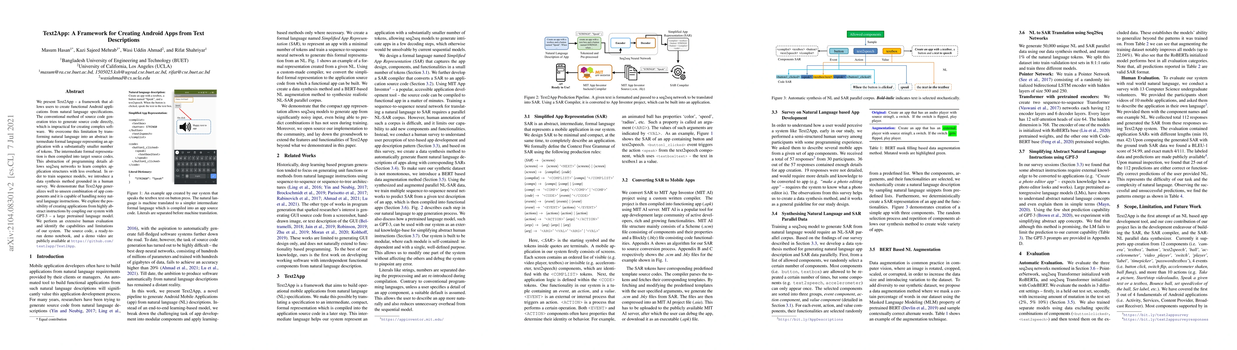 Researchers developed Text2App, a framework that allows users to create Android apps from natural language specifications, demonstrating its ability to generalize to unseen app combinations.