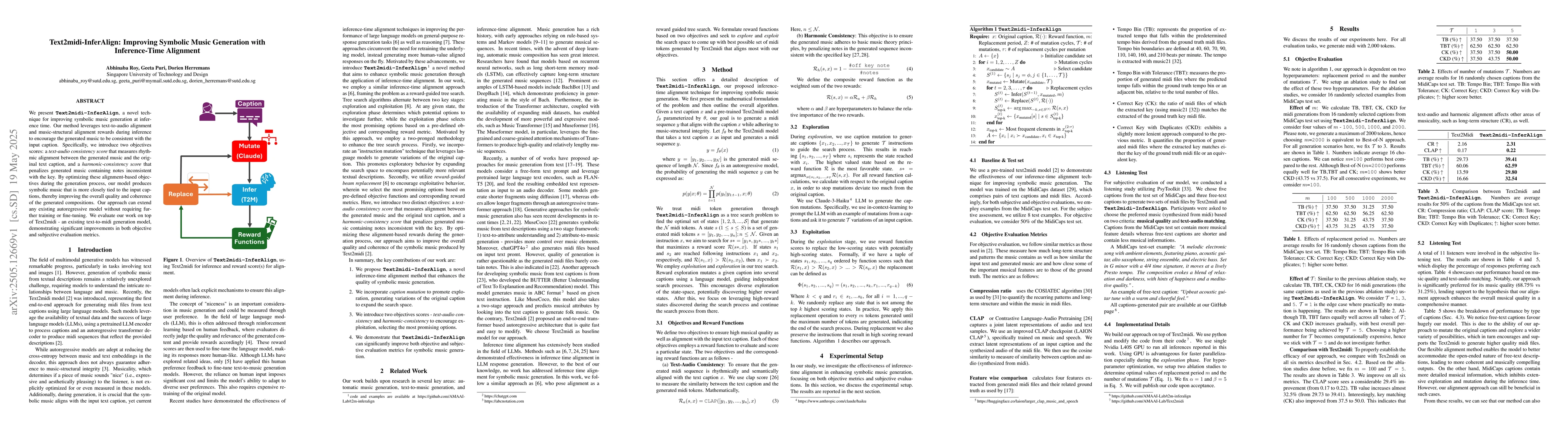 The research introduces Text2midi-InferAlign, a technique that enhances symbolic music generation at inference time by utilizing text-to-audio alignment and music structural alignment rewards. It optimizes two alignment-based objectives: a text-audio consistency score for rhythmic alignment and a harmonic consistency score to avoid notes inconsistent with the key.