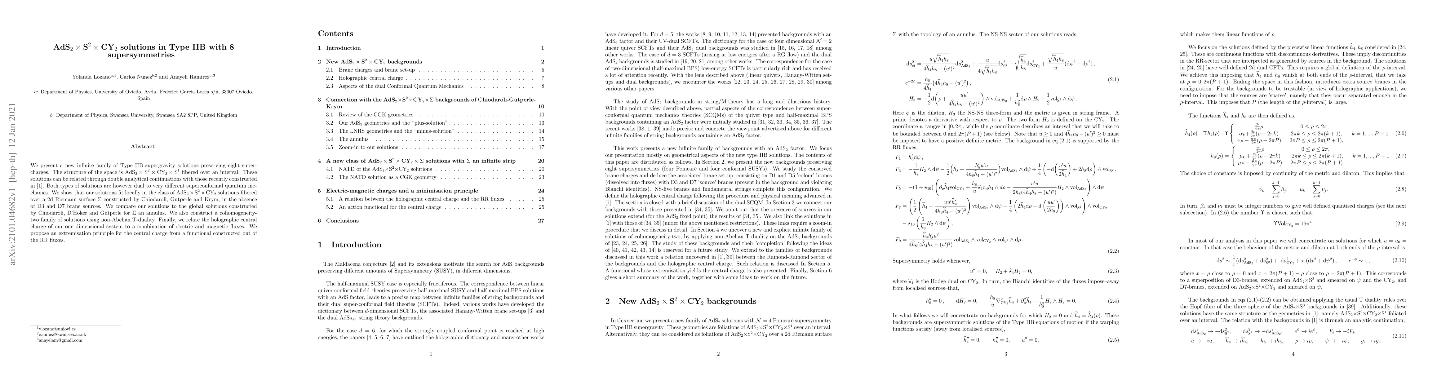 We present a new infinite family of Type IIB supergravity solutions preserving eight supercharges. The structure of the space is $\text{AdS}_2\times\text{S}^2\times \text{CY}_2\times \text{S}^1$ fibered over an interval. These solutions can be related through double analytical continuations with those recently constructed in \cite{Lozano:2020txg}. Both types of solutions are however dual to very different superconformal quantum mechanics. We show that our solutions fit locally in the class of $\text{AdS}_2\times \text{S}^2\times \text{CY}_2$ solutions fibered over a 2d Riemann surface $\Sigma$ constructed by Chiodaroli, Gutperle and Krym, in the absence of D3 and D7 brane sources. We compare our solutions to the global solutions constructed by Chiodaroli, D'Hoker and Gutperle for $\Sigma$ an annulus. We also construct a cohomogeneity-two family of solutions using non-Abelian T-duality. Finally, we relate the holographic central charge of our one dimensional system to a combination of electric and magnetic fluxes. We propose an extremisation principle for the central charge from a functional constructed out of the RR fluxes.