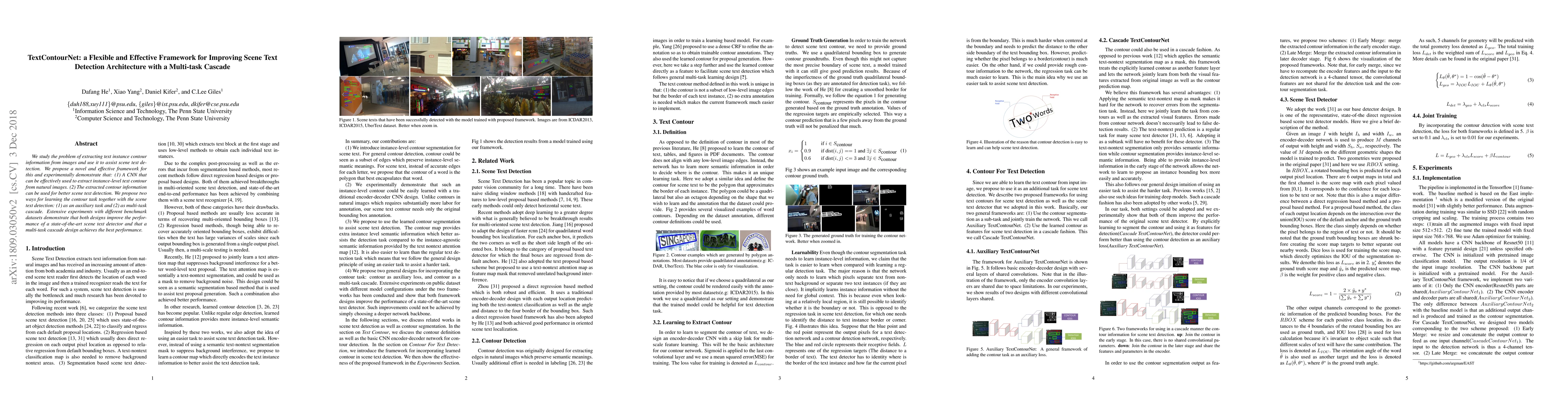 A new framework called TextContourNet improves scene text detection by extracting instance-level text contour information from images using a CNN. The proposed multi-task cascade design achieves the best performance on benchmark datasets.