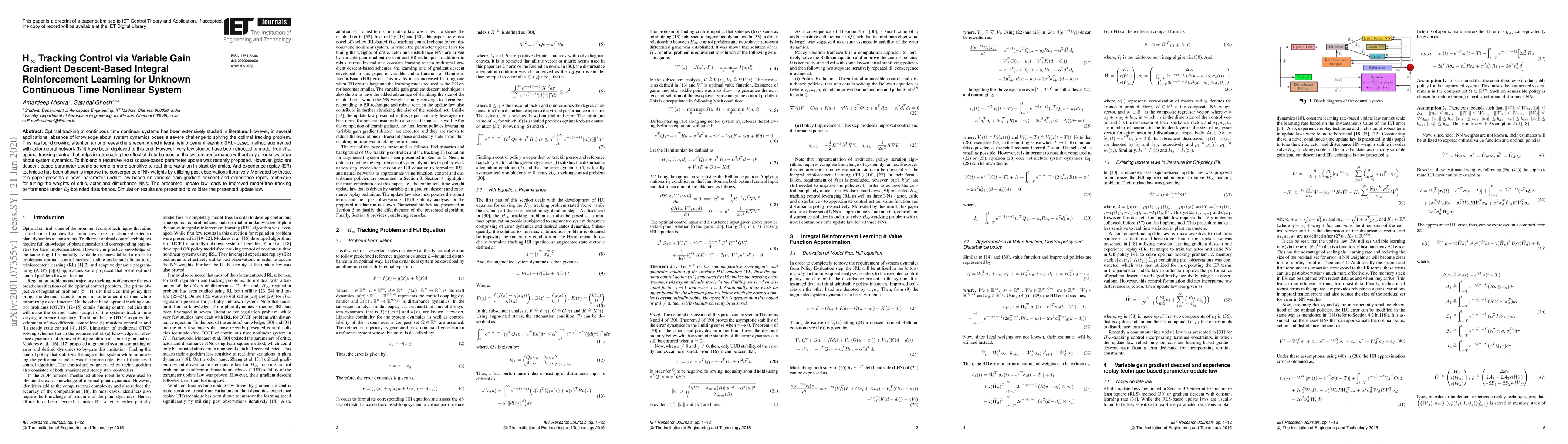 This paper proposes a novel $H_{\infty}$ tracking control method for unknown continuous time nonlinear systems using variable gain gradient descent and experience replay techniques to update the parameters of actor and critic neural networks, aiming to attenuate disturbances without prior knowledge of system dynamics.