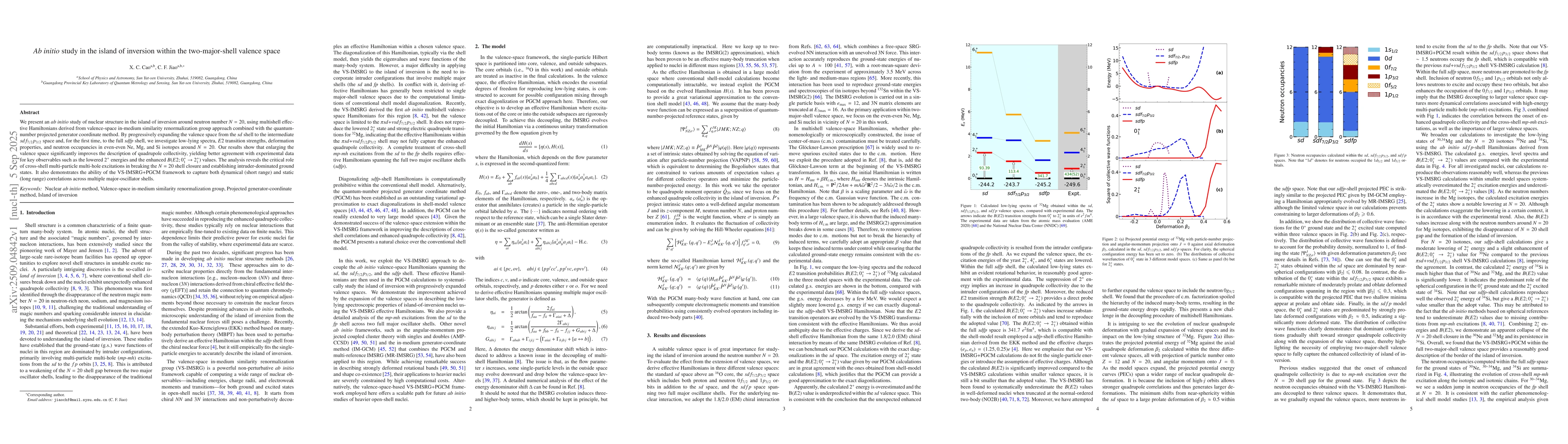 We present an \textit{ab initio} study of nuclear structure in the island of inversion around neutron number $N=20$, using multishell effective Hamiltonians derived from valence-space in-medium similarity renormalization group approach combined with the quantum-number projected generator coordinate method. By progressively expanding the valence space from the \textit{sd} shell to the intermediate $sdf_{7/2}p_{3/2}$ space and, for the first time, to the full \textit{sdfp} shell, we investigate low-lying spectra, $E2$ transition strengths, deformation properties, and neutron occupancies in even-even Ne, Mg, and Si isotopes around $N=20$. Our results show that enlarging the valence space significantly improves the description of quadrupole collectivity, yielding better agreement with experimental data for key observables such as the lowered $2^+$ energies and the enhanced $B(E2;0^+_1\rightarrow2_1^+)$ values. The analysis reveals the critical role of cross-shell multi-particle multi-hole excitations in breaking the $N=20$ shell closure and establishing intruder-dominated ground states. It also demonstrates the ability of the VS-IMSRG+PGCM framework to capture both dynamical (short range) and static (long range) correlations across multiple major-oscillator shells.