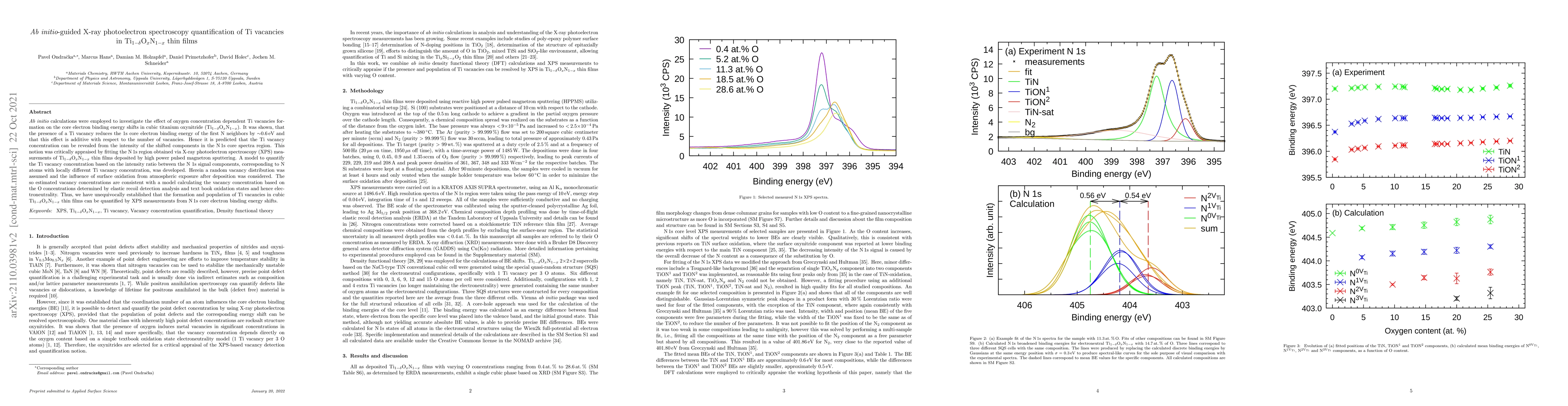 This paper uses $\textit{ab initio}$ calculations and X-ray photoelectron spectroscopy (XPS) to quantify Ti vacancies in Ti$_{1-\delta}$O$_x$N$_{1-x}$ thin films. It demonstrates that Ti vacancies cause shifts in N 1s core electron binding energy, enabling the estimation of vacancy concentration from the intensity of these shifts.