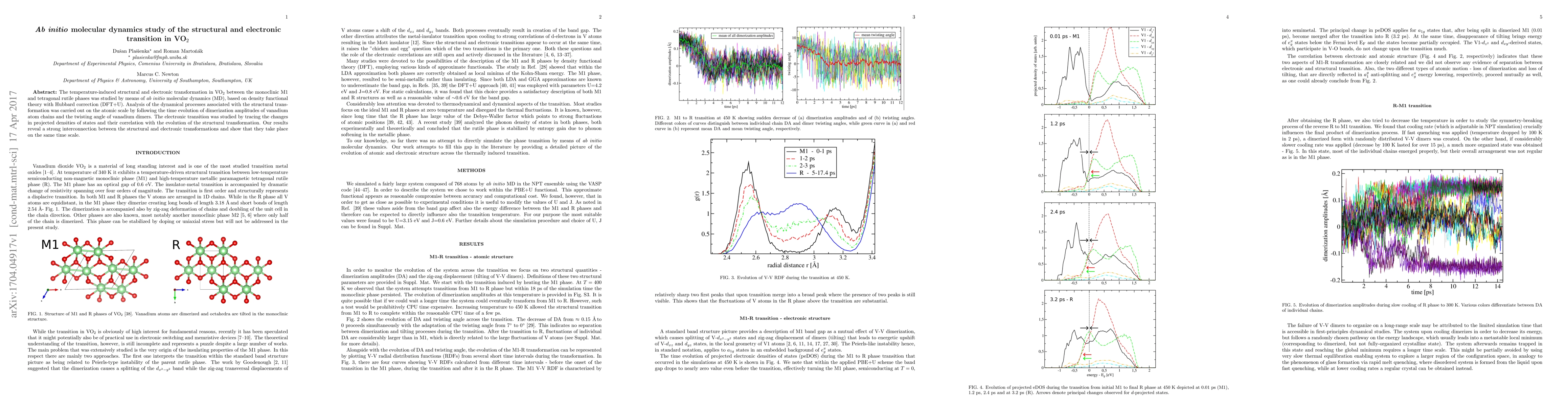 This study uses \textit{ab initio} molecular dynamics to investigate the temperature-induced structural and electronic transition in VO$_2$ from monoclinic M1 to tetragonal rutile phases, revealing a strong correlation between structural and electronic changes occurring simultaneously.