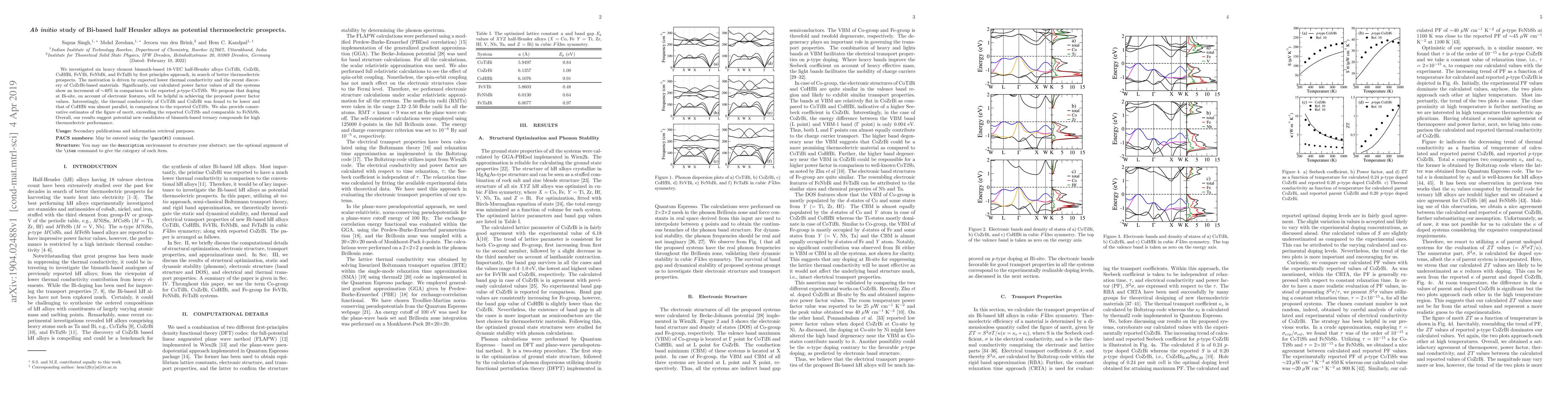 This study uses \textit{ab initio} methods to evaluate six bismuth-based half-Heusler alloys for thermoelectric applications, finding a $\sim$40\% increase in power factor compared to \textit{p}-type CoTiSb. The lower thermal conductivity in CoTiBi and CoZrBi, along with promising figures of merit, suggests these materials as potential candidates for high thermoelectric performance.