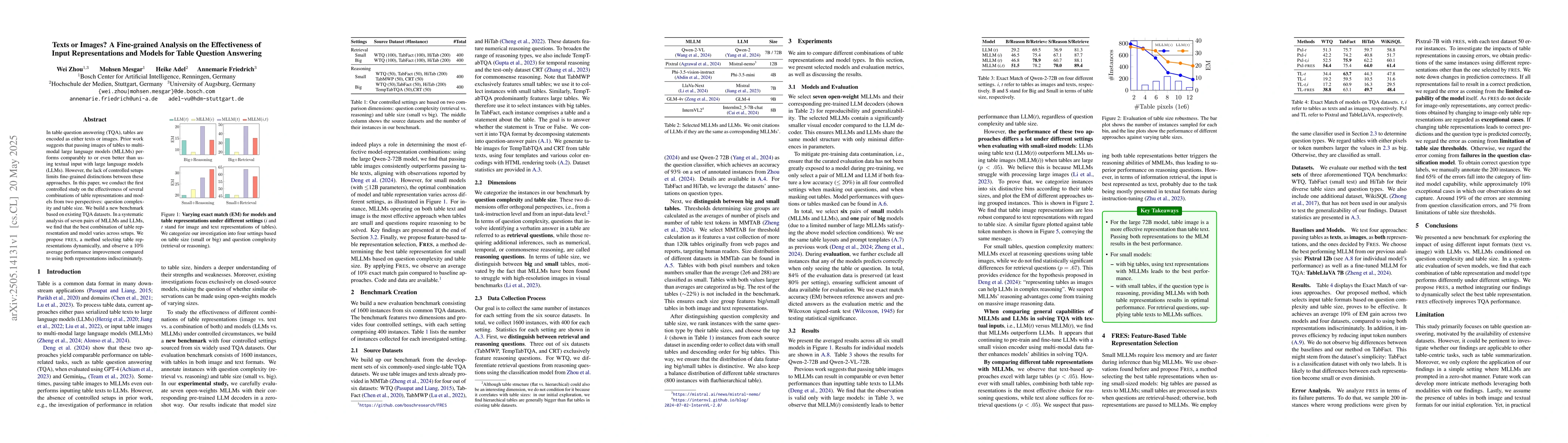 This work distinguishes itself by conducting the first controlled study on table representation and model effectiveness in TQA, proposing FRES for dynamic representation selection.