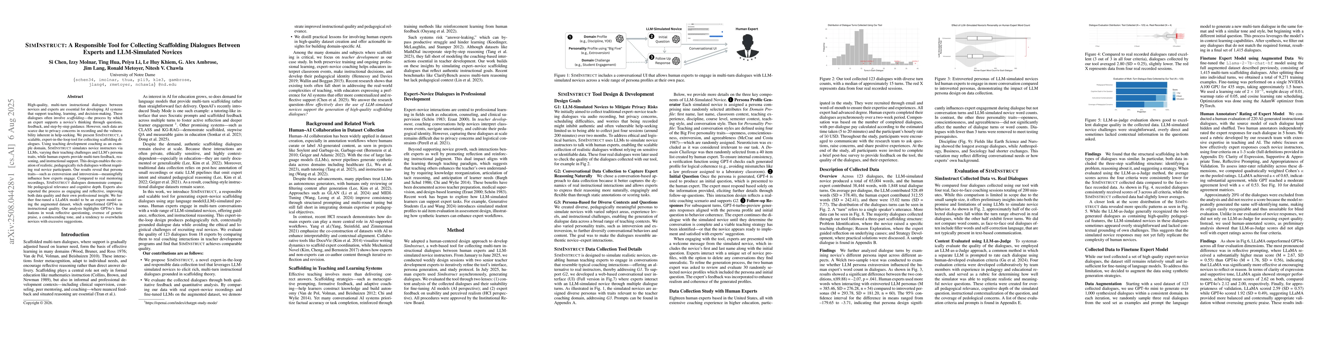 High-quality, multi-turn instructional dialogues between novices and experts are essential for developing AI systems that support teaching, learning, and decision-making. These dialogues often involve scaffolding -- the process by which an expert supports a novice's thinking through questions, feedback, and step-by-step guidance. However, such data are scarce due to privacy concerns in recording and the vulnerability inherent in help-seeking. We present SimInstruct, a scalable, expert-in-the-loop tool for collecting scaffolding dialogues. Using teaching development coaching as an example domain, SimInstruct simulates novice instructors via LLMs, varying their teaching challenges and LLM's persona traits, while human experts provide multi-turn feedback, reasoning, and instructional support. This design enables the creation of realistic, pedagogically rich dialogues without requiring real novice participants. Our results reveal that persona traits, such as extroversion and introversion, meaningfully influence how experts engage. Compared to real mentoring recordings, SimInstruct dialogues demonstrate comparable pedagogical relevance and cognitive depth. Experts also reported the process as engaging and reflective, improving both data quality and their own professional insight. We further fine-tuned a LLaMA model to be an expert model using the augmented dataset, which outperformed GPT-4o in instructional quality. Our analysis highlights GPT-4o's limitations in weak reflective questioning, overuse of generic praise, a condescending tone, and a tendency to overwhelm novices with excessive suggestions.