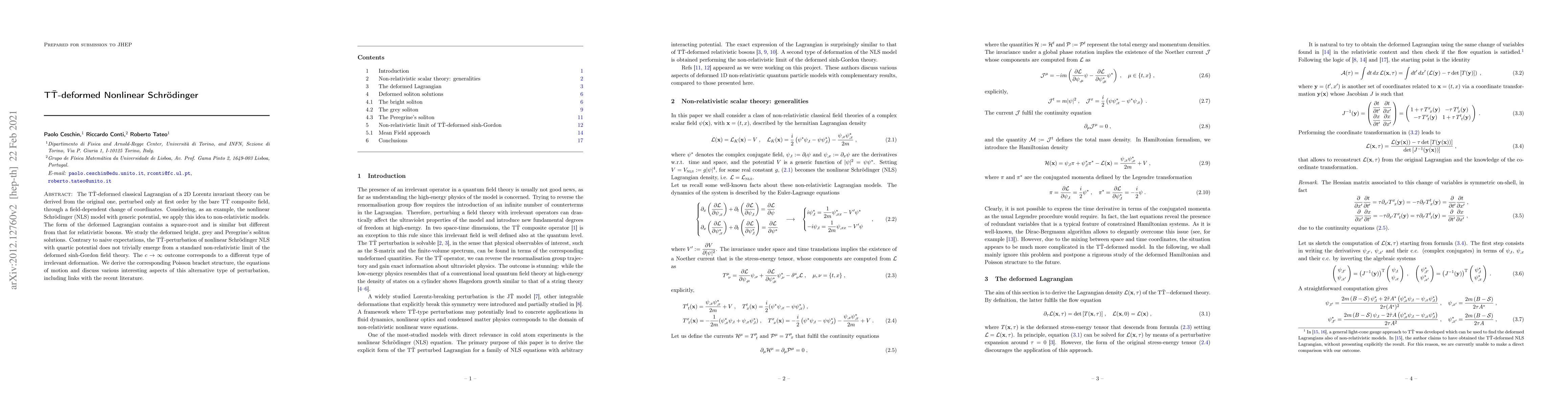 The paper presents a method to derive the $ ext{T}ar{ ext{T}}$ deformed Lagrangian for non-relativistic models, specifically the NLS model, and analyzes the resulting soliton solutions and their dynamics.