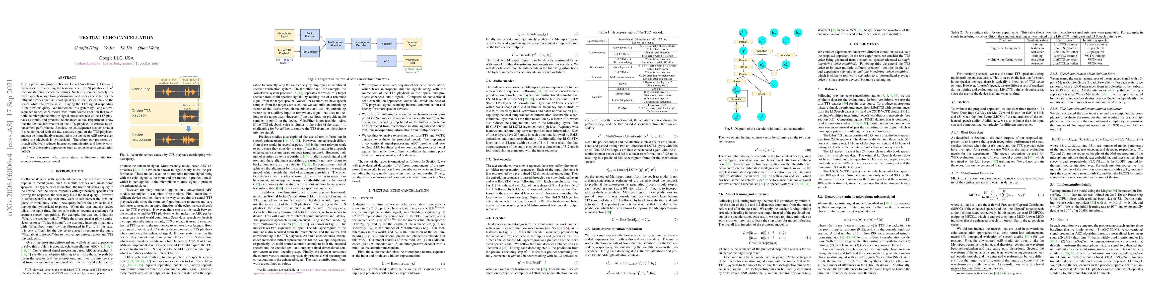 In this paper, we propose Textual Echo Cancellation (TEC) - a framework for cancelling the text-to-speech (TTS) playback echo from overlapping speech recordings. Such a system can largely improve speech recognition performance and user experience for intelligent devices such as smart speakers, as the user can talk to the device while the device is still playing the TTS signal responding to the previous query. We implement this system by using a novel sequence-to-sequence model with multi-source attention that takes both the microphone mixture signal and source text of the TTS playback as inputs, and predicts the enhanced audio. Experiments show that the textual information of the TTS playback is critical to enhancement performance. Besides, the text sequence is much smaller in size compared with the raw acoustic signal of the TTS playback, and can be immediately transmitted to the device or ASR server even before the playback is synthesized. Therefore, our proposed approach effectively reduces Internet communication and latency compared with alternative approaches such as acoustic echo cancellation (AEC).