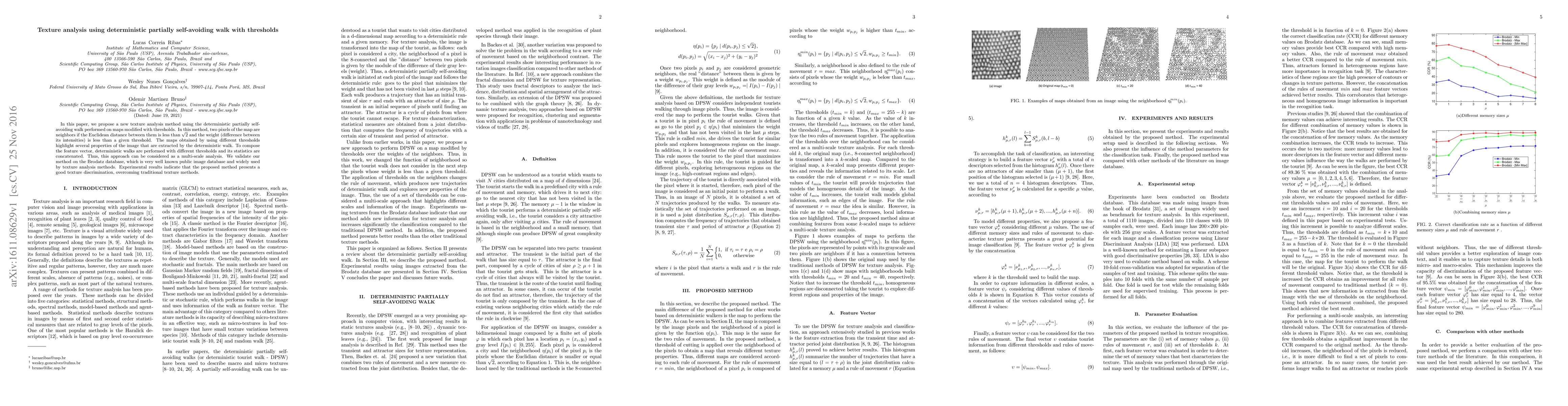 A new texture analysis method uses deterministic partially self-avoiding walks on maps with threshold values to extract image properties, achieving good texture discrimination results.