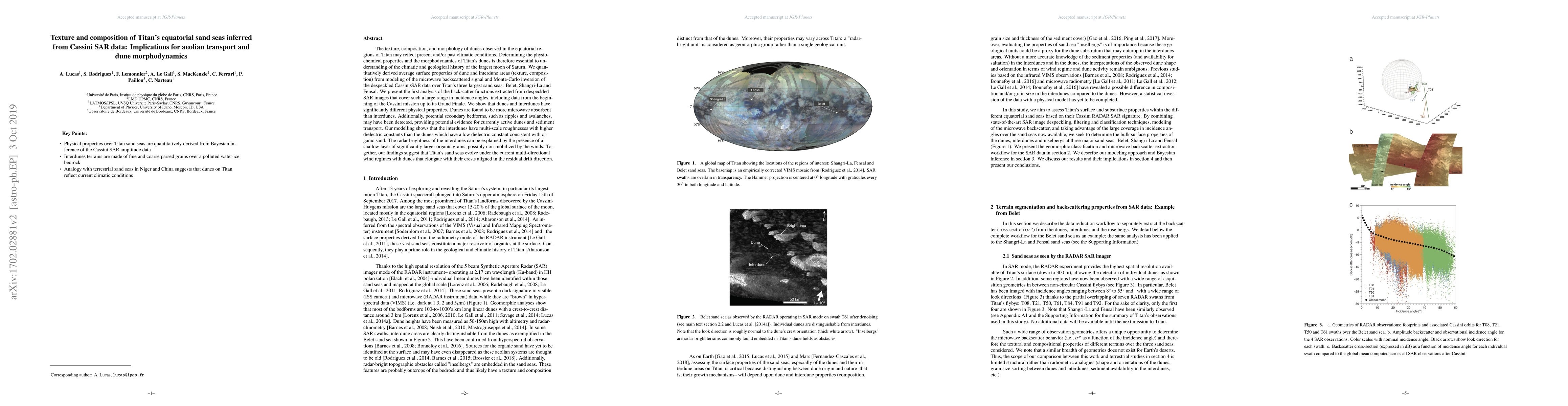 This study uses Cassini SAR data to analyze the texture and composition of Titan's equatorial sand seas, revealing that dunes are more absorbent and have lower dielectric constants than interdunes, suggesting active aeolian transport and sediment movement. The interdunes exhibit multi-scale roughness and larger organic grains, indicating a complex interaction between wind dynamics and dune formation.