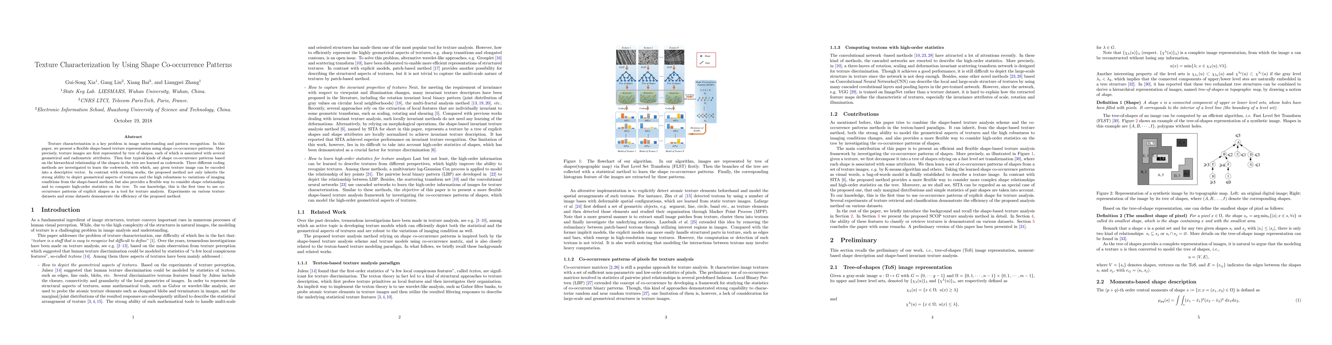 Texture characterization is a key problem in image understanding and pattern recognition. In this paper, we present a flexible shape-based texture representation using shape co-occurrence patterns. More precisely, texture images are first represented by tree of shapes, each of which is associated with several geometrical and radiometric attributes. Then four typical kinds of shape co-occurrence patterns based on the hierarchical relationship of the shapes in the tree are learned as codewords. Three different coding methods are investigated to learn the codewords, with which, any given texture image can be encoded into a descriptive vector. In contrast with existing works, the proposed method not only inherits the strong ability to depict geometrical aspects of textures and the high robustness to variations of imaging conditions from the shape-based method, but also provides a flexible way to consider shape relationships and to compute high-order statistics on the tree. To our knowledge, this is the first time to use co-occurrence patterns of explicit shapes as a tool for texture analysis. Experiments on various texture datasets and scene datasets demonstrate the efficiency of the proposed method.