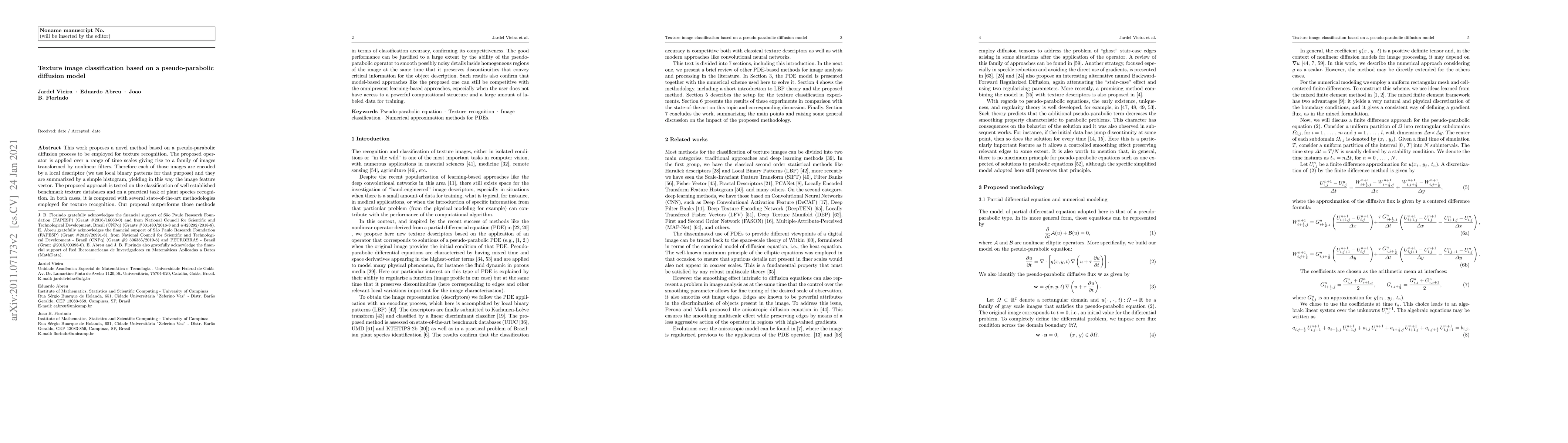 A new method using a pseudo-parabolic diffusion process outperforms state-of-the-art texture recognition methods with high accuracy, offering a competitive alternative to learning-based approaches.