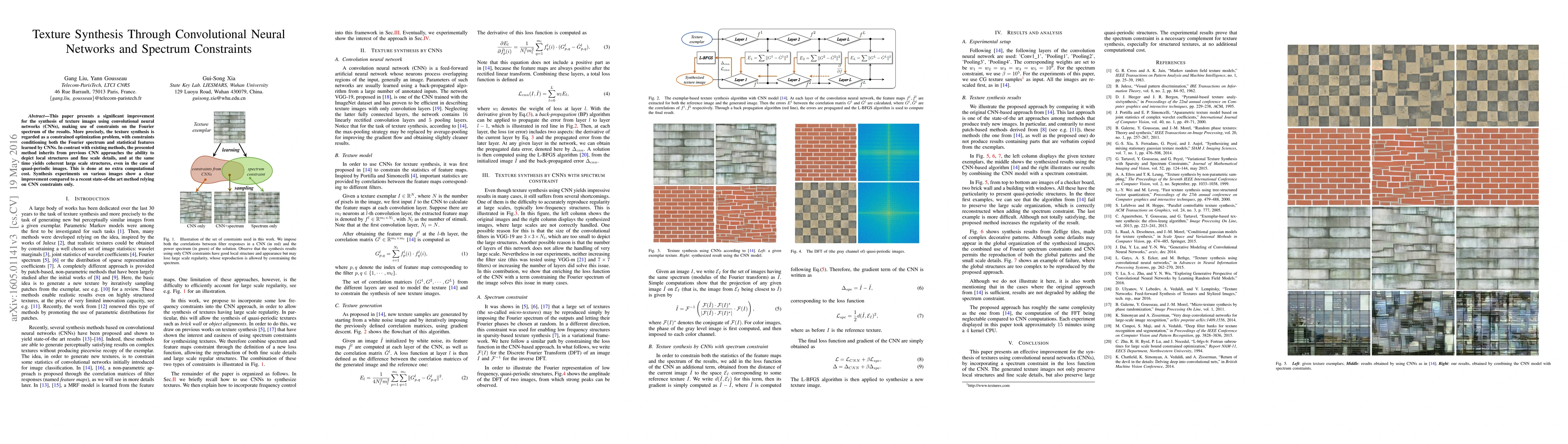 This paper enhances texture synthesis using convolutional neural networks (CNNs) by incorporating Fourier spectrum constraints, achieving coherent large-scale structures while maintaining local details, outperforming existing CNN-based methods. The approach synthesizes textures with improved quality at no additional computational cost.