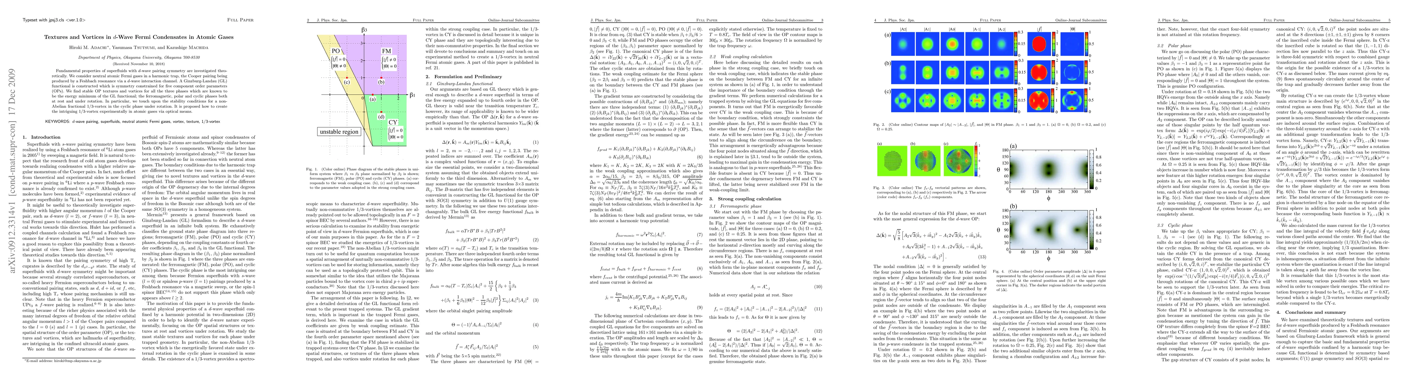 This paper investigates the fundamental properties of d-wave pairing superfluids in atomic Fermi gases, constructing a Ginzburg-Landau functional for five component order parameters. It identifies stable textures and vortices in the ferromagnetic, polar, and cyclic phases, including the stability of a non-Abelian fractional 1/3-vortex under rotation, and proposes an experimental method for its creation using optical techniques.