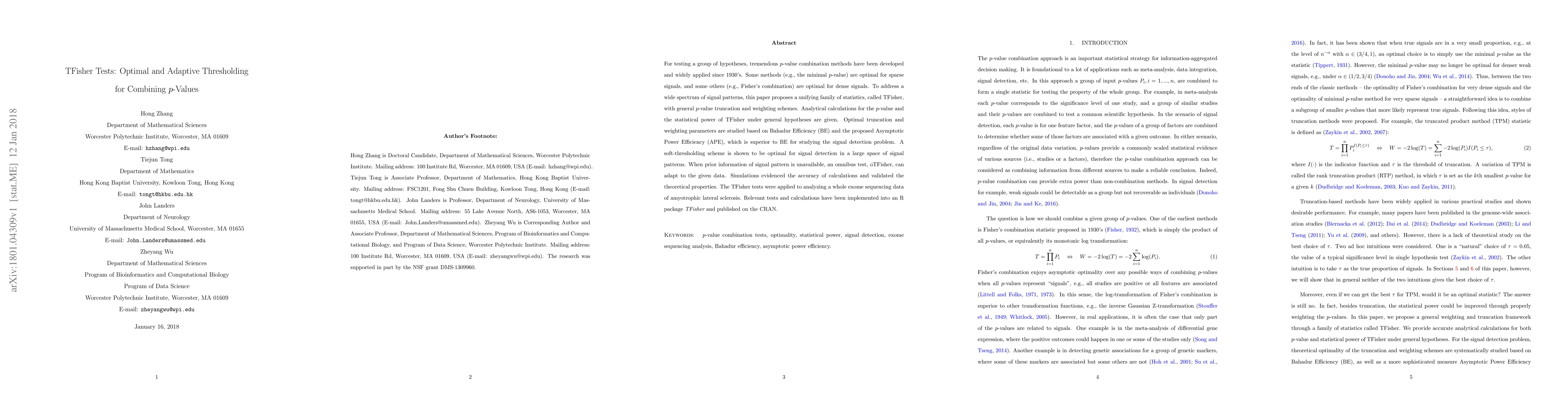 This paper proposes TFisher tests, a unifying family of statistics for combining p-values, which can adapt to various signal patterns using general truncation and weighting schemes. It introduces Asymptotic Power Efficiency (APE) for optimal parameter selection, surpassing Bahadur Efficiency. The method was validated through simulations and applied to amyotrophic lateral sclerosis data analysis, with an R package named TFisher made available.