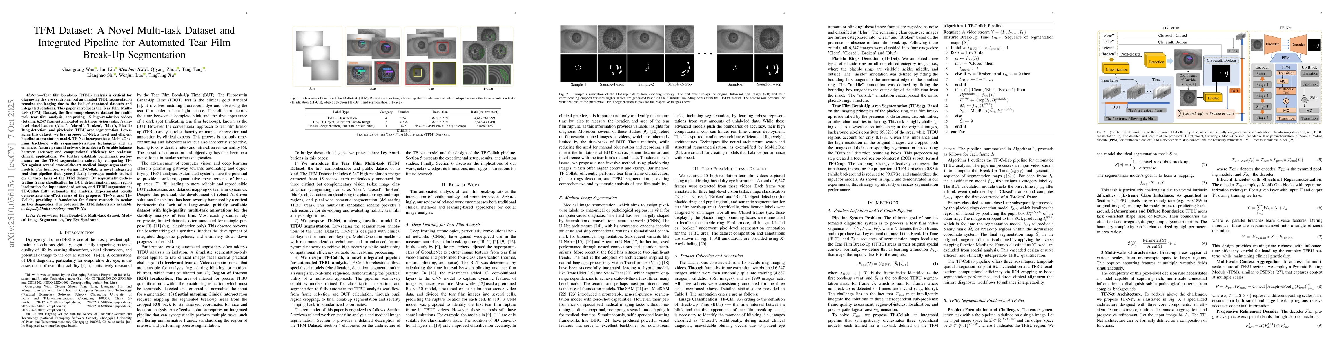 The research introduces the TearFilm Multi-task (TFM) Dataset, the first comprehensive benchmark for automated tear film analysis, and proposes TF-Net, an efficient segmentation model for tear film break-up analysis. It also designs TF-Collab, an integrated pipeline combining multiple vision tasks for objective diagnostic assessment.