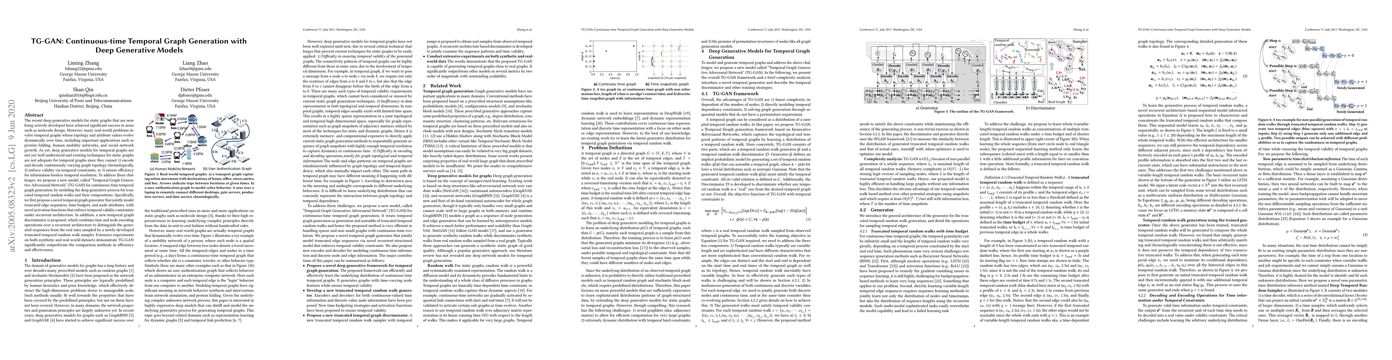 The paper introduces TG-GAN, a novel deep generative model for continuous-time temporal graph generation, addressing the limitations of existing static graph models. TG-GAN effectively models truncated temporal random walks and enforces temporal constraints, demonstrating superior efficiency and effectiveness in generating realistic temporal graphs.