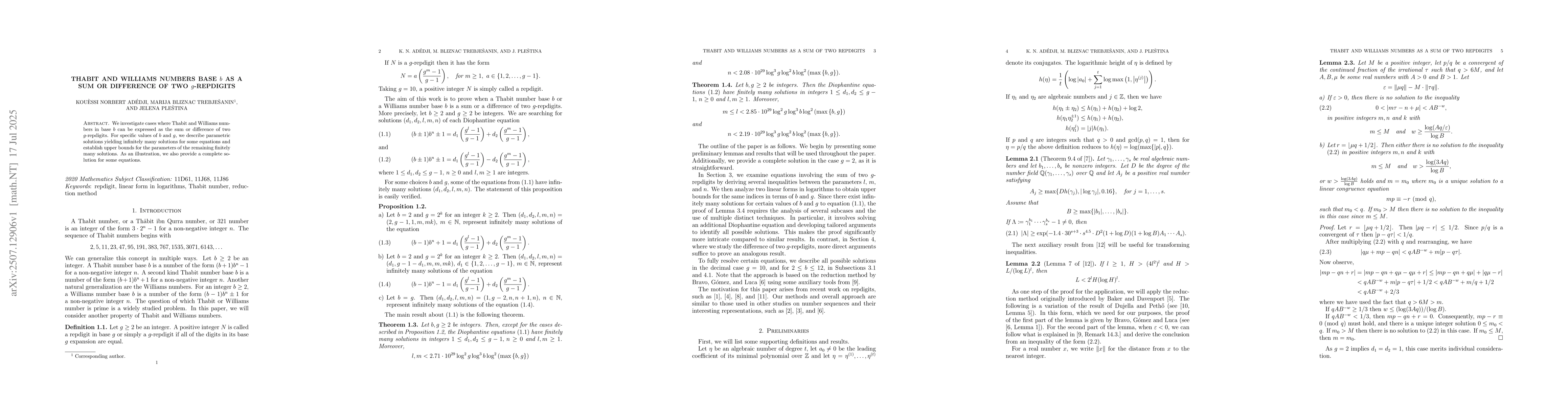 We investigate cases where Thabit and Williams numbers in base $b$ can be expressed as the sum or difference of two $g$-repdigits. For specific values of $b$ and $g$, we describe parametric solutions yielding infinitely many solutions for some equations and establish upper bounds for the parameters of the remaining finitely many solutions. As an illustration, we also provide a complete solution for some equations.