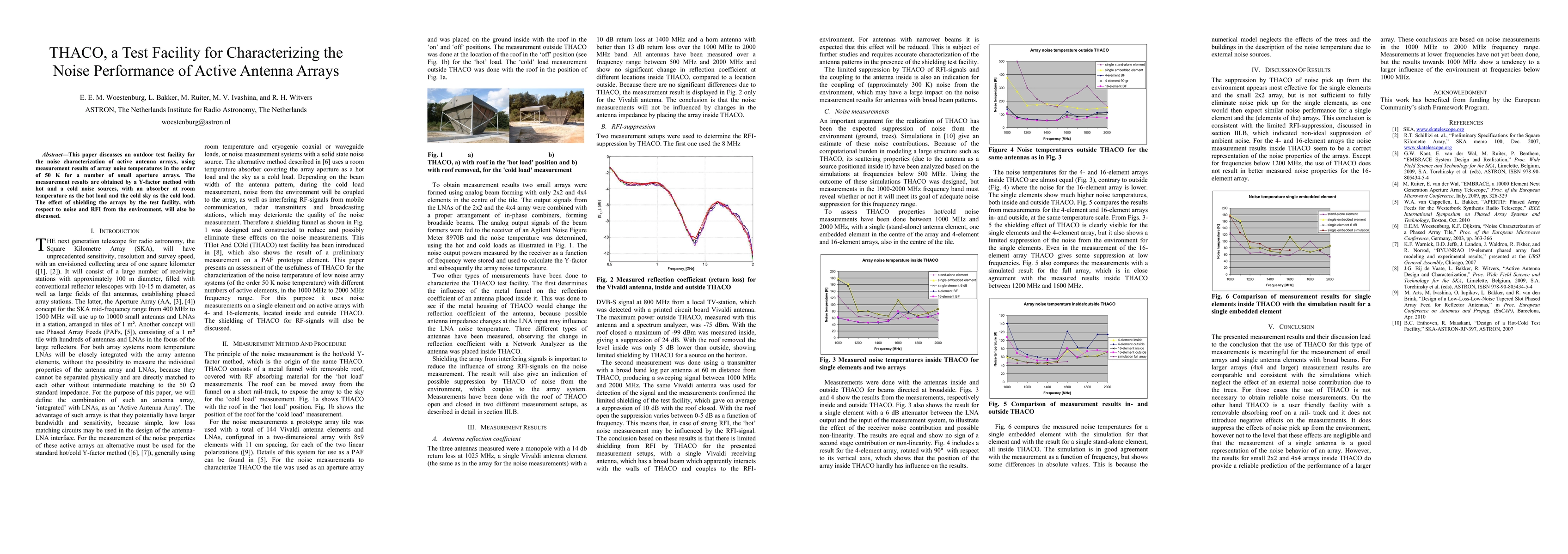 This paper discusses an outdoor test facility for the noise characterization of active antenna arrays, using measurement results of array noise temperatures in the order of 50 K for a number of small aperture arrays. The measurement results are obtained by a Y-factor method with hot and a cold noise sources, with an absorber at room temperature as the hot load and the cold sky as the cold load. The effect of shielding the arrays by the test facility, with respect to noise and RFI from the environment, will also be discussed.