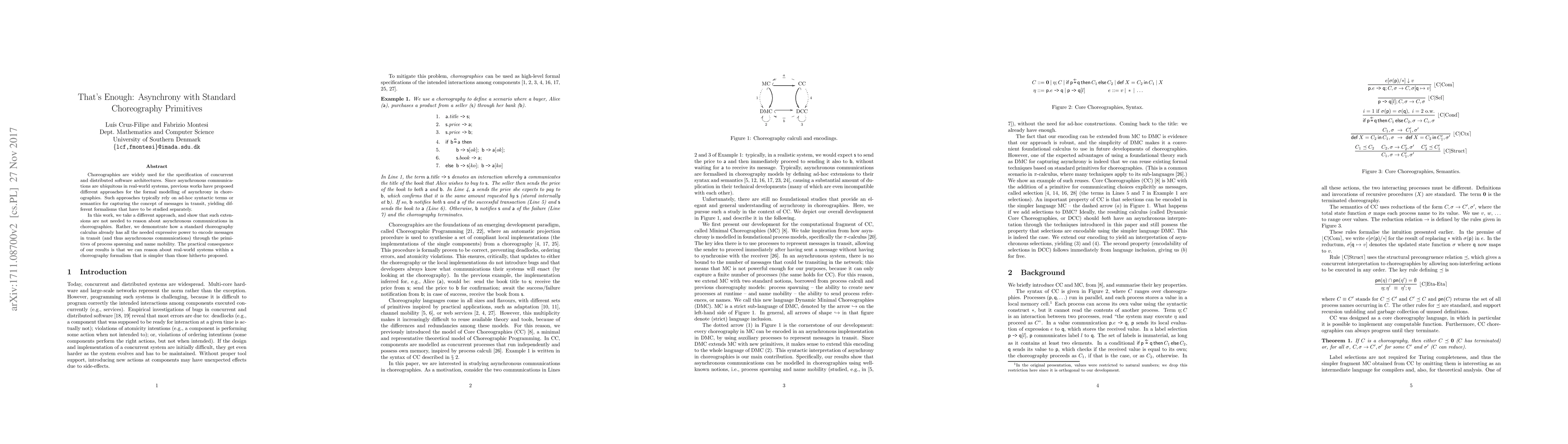 Choreographies are widely used for the specification of concurrent and distributed software architectures. Since asynchronous communications are ubiquitous in real-world systems, previous works have proposed different approaches for the formal modelling of asynchrony in choreographies. Such approaches typically rely on ad-hoc syntactic terms or semantics for capturing the concept of messages in transit, yielding different formalisms that have to be studied separately. In this work, we take a different approach, and show that such extensions are not needed to reason about asynchronous communications in choreographies. Rather, we demonstrate how a standard choreography calculus already has all the needed expressive power to encode messages in transit (and thus asynchronous communications) through the primitives of process spawning and name mobility. The practical consequence of our results is that we can reason about real-world systems within a choreography formalism that is simpler than those hitherto proposed.