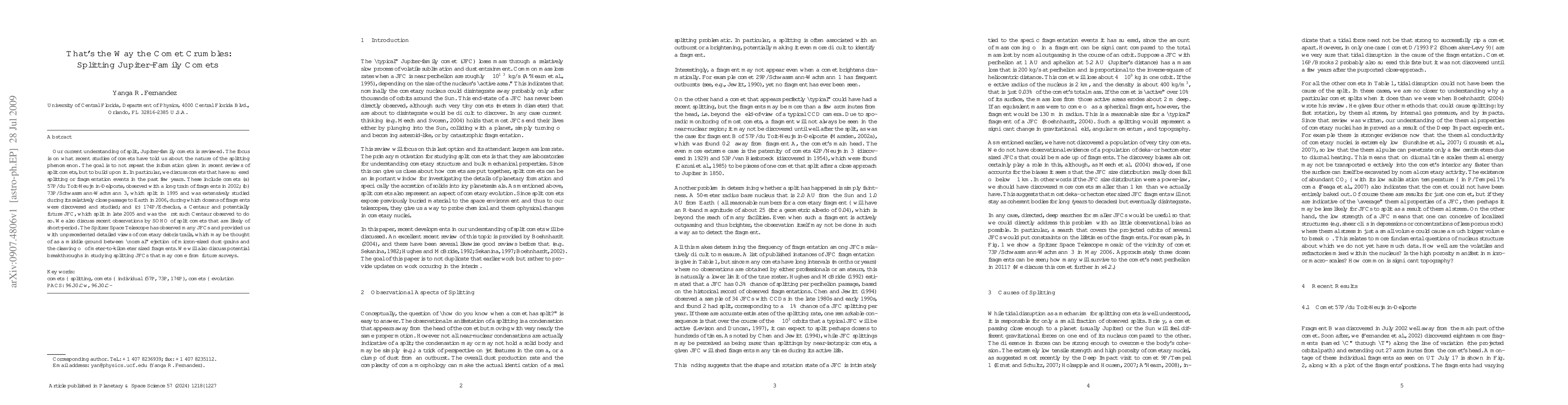 Our current understanding of split, Jupiter-family comets is reviewed. The focus is on what recent studies of comets have told us about the nature of the splitting phenomenon. The goal is to not repeat the information given in recent reviews of split comets, but to build upon it. In particular, we discuss comets that have suffered splitting or fragmentation events in the past few years. These include comets (a) 57P/du Toit-Neujmin-Delporte, observed with a long train of fragments in 2002; (b) 73P/Schwassmann-Wachmann 3, which split in 1995 and was extensively studied during its relatively close passage to Earth in 2006, during which dozens of fragments were discovered and studied; and (c) 174P/Echeclus, a Centaur and potentially future JFC, which split in late 2005 and was the first such Centaur observed to do so. We also discuss recent observations by SOHO of split comets that are likely of short-period. The Spitzer Space Telescope has observed many JFCs and provided us with unprecedented detailed views of cometary debris trails, which may be thought of as a middle ground between "normal" ejection of micron-sized dust grains and the cleaving off of meter-to-kilometer sized fragments. We will also discuss potential breakthroughs in studying splitting JFCs that may come from future surveys.