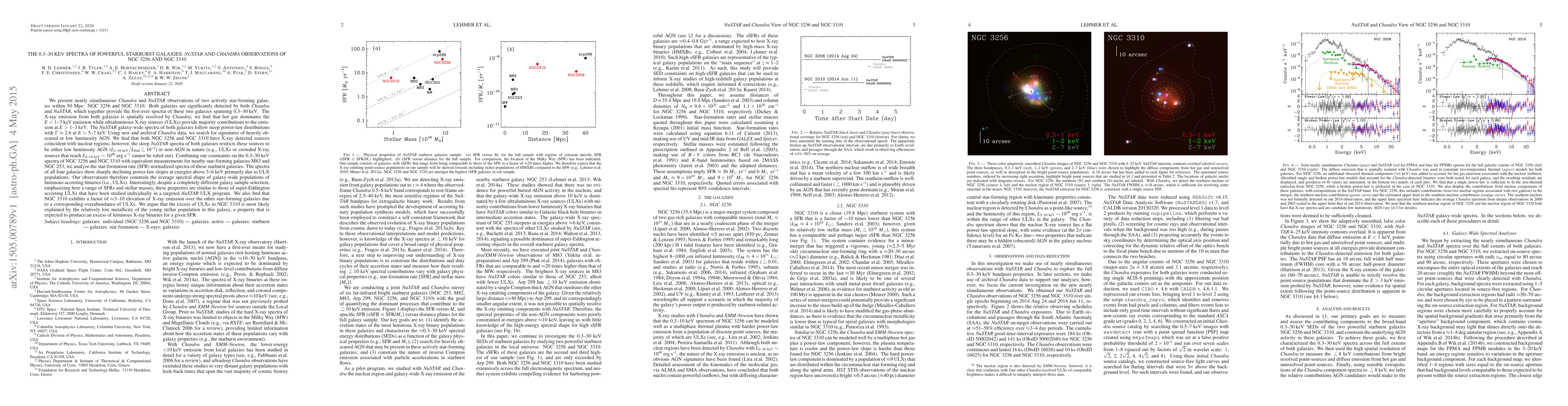 We present nearly simultaneous Chandra and NuSTAR observations of two actively star-forming galaxies within 50 Mpc: NGC 3256 and NGC 3310. Both galaxies are detected by both Chandra and NuSTAR, which together provide the first-ever spectra of these two galaxies spanning 0.3-30 keV. The X-ray emission from both galaxies is spatially resolved by Chandra; we find that hot gas dominates the E < 1-3 keV emission while ultraluminous X-ray sources (ULXs) dominate at E > 1-3 keV. The NuSTAR galaxy-wide spectra of both galaxies follow steep power-law distributions with Gamma ~ 2.6 at E > 5-7 keV, similar to the spectra of bright individual ULXs and other galaxies that have been studied by NuSTAR. We find that both NGC 3256 and NGC 3310 have X-ray detected sources coincident with nuclear regions; however, the steep NuSTAR spectra of both galaxies restricts these sources to be either low luminosity AGN or non-AGN in nature (e.g., ULXs or crowded X-ray sources that reach L2-10 keV ~ 10^40 erg/s cannot be ruled out). Combining our constraints on the 0.3-30 keV spectra of NGC 3256 and NGC 3310 with equivalent measurements for nearby star-forming galaxies M83 and NGC 253, we analyze the SFR-normalized spectra of these starburst galaxies. The spectra of all four galaxies show sharply declining power-law slopes above 3-6 keV due to ULX populations. Our observations therefore constrain the average spectra of luminous accreting binaries (i.e., ULXs). This result is similar to the super-Eddington accreting ULXs that have been studied individually in a targeted NuSTAR ULX program. We also find that NGC 3310 exhibits a factor of ~3-10 elevation of X-ray emission over the other star-forming galaxies. We argue that the excess is most likely explained by the relatively low metallicity of the young stellar population in NGC 3310.