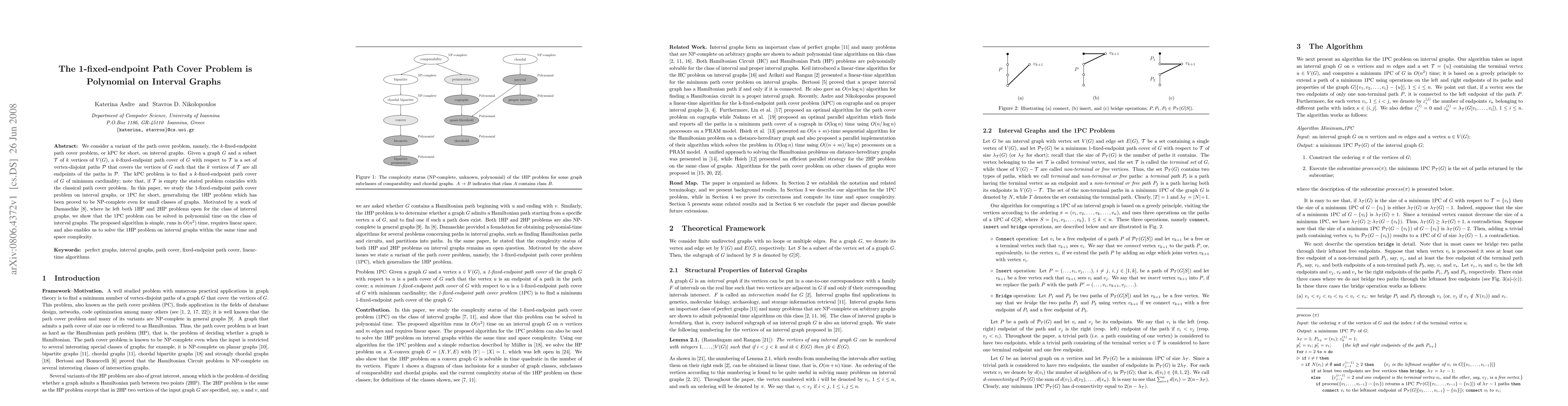 This work is novel because it provides a solution to the 1PC problem on interval graphs, which was previously open, and its results have implications for graph theory and computer science.