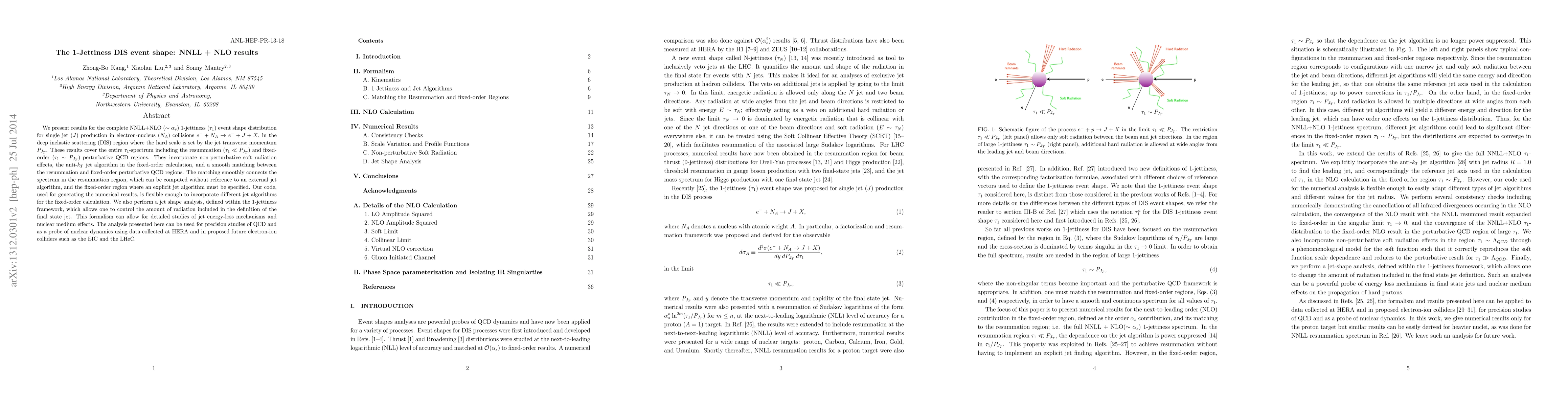 This paper presents complete NNLL+NLO results for the 1-jettiness event shape in deep inelastic scattering, incorporating resummation and fixed-order perturbative QCD, non-perturbative effects, and a smooth matching between different regions. The analysis can be used for precision studies of QCD and to probe nuclear dynamics.