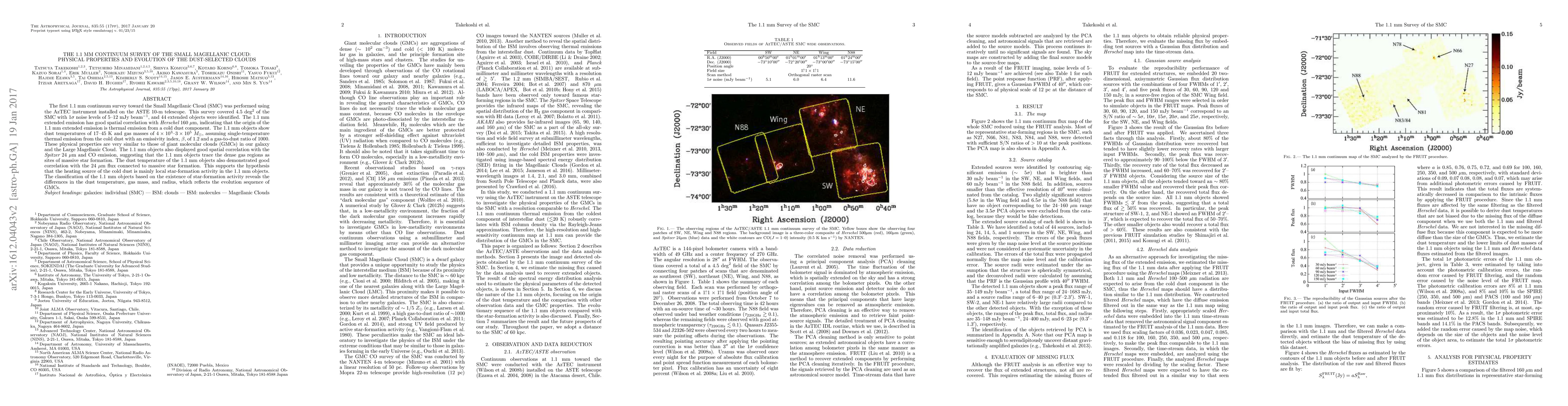 The 1.1 mm continuum survey of the Small Magellanic Cloud identified 44 cold dust-rich objects using the AzTEC instrument. These objects, similar in properties to Giant Molecular Clouds in our galaxy and the Large Magellanic Cloud, have temperatures of 17-45K and masses of 4x10^3-3x10^5 M☉. The study found that these 1.1 mm objects correlate with star-formation activity, suggesting local star formation heats the cold dust. Classification of these objects reveals an evolution sequence mirroring that of GMCs.