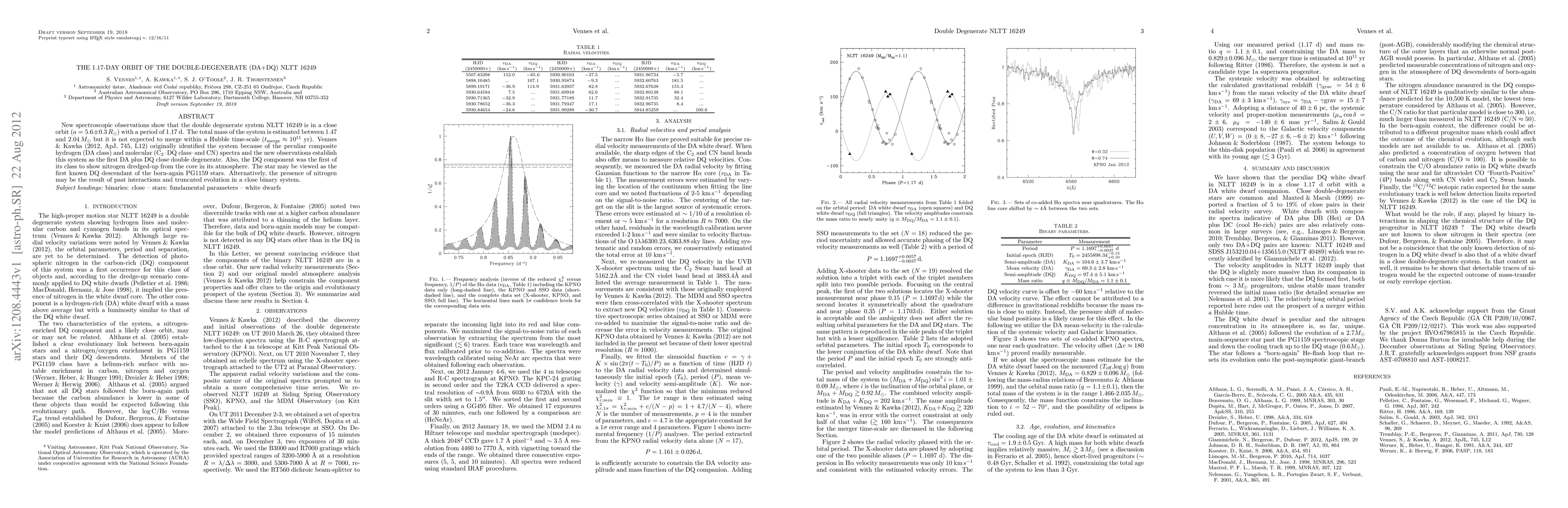 The double degenerate system NLTT 16249 has a close orbit of 1.17 days with a mass range of 1.47 to 2.04 solar masses, marking the first DA+DQ close double degenerate found in this configuration.
