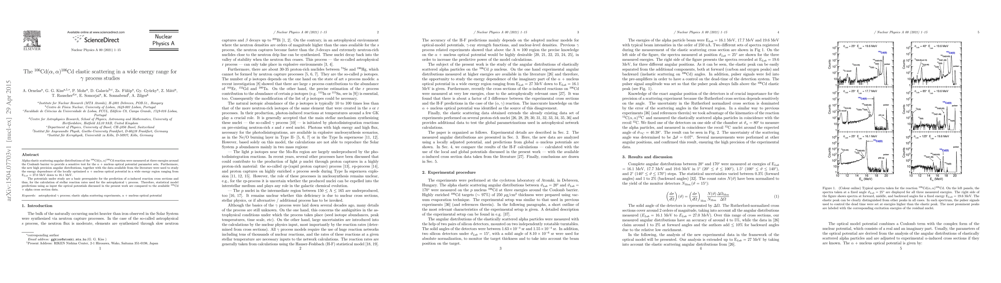 Researchers measured alpha elastic scattering angular distributions in a wide energy range to test optical potential parameter sets for gamma-process studies. Their findings improve predictions of alpha-induced reaction cross sections and stellar reaction rates.
