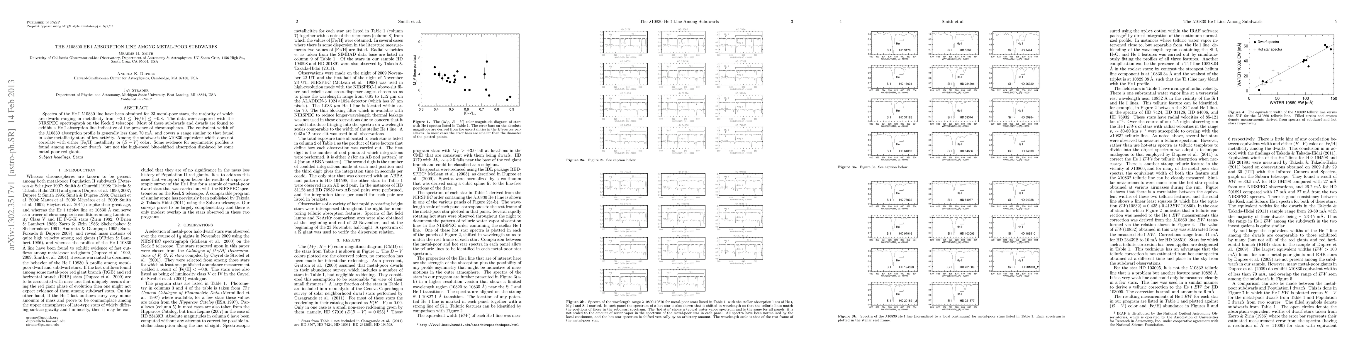 This study analyzes the He I 10830 absorption line in spectra of 23 metal-poor stars, revealing chromospheres in most, with equivalent widths similar to low-activity solar metallicity stars. No correlation between He I absorption and metallicity or color is found among subdwarfs.