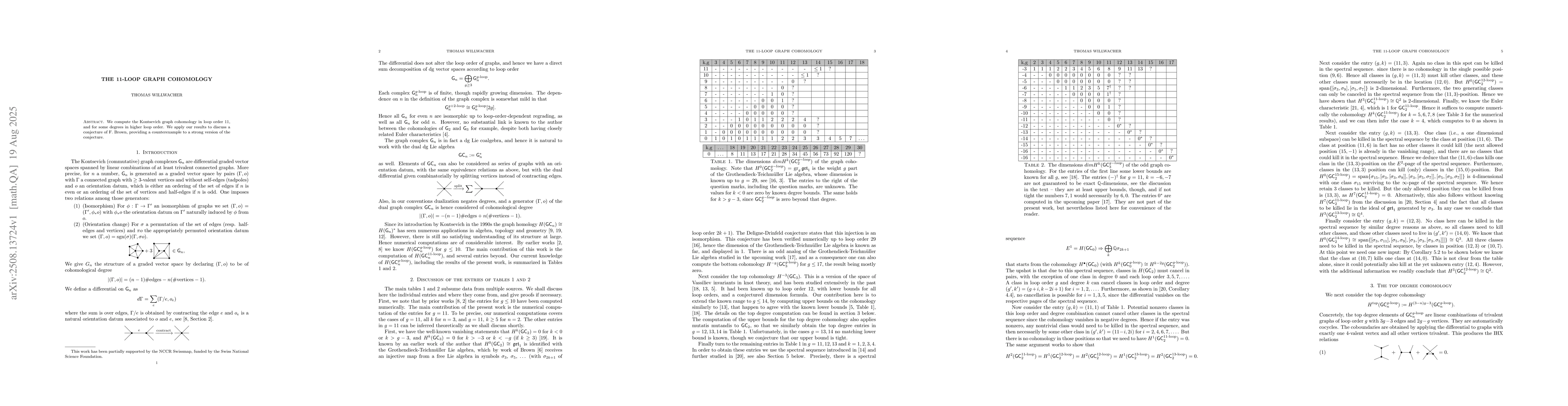 We compute the Kontsevich graph cohomology in loop order 11, and for some degrees in higher loop order. We apply our results to discuss a conjecture of F. Brown, providing a counterexample to a strong version of the conjecture.