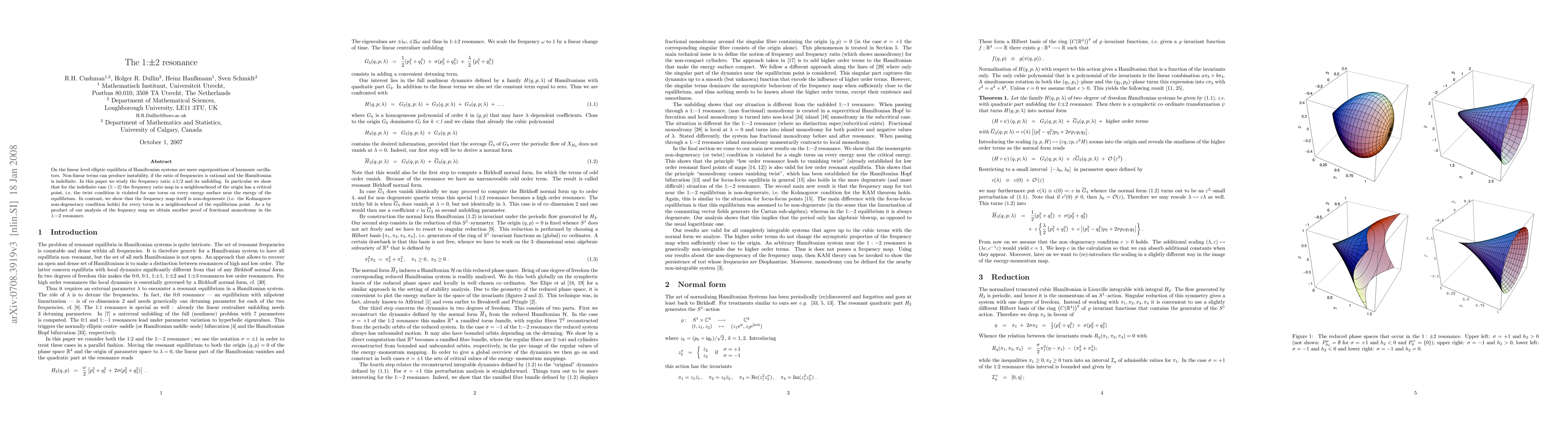 Researchers study the 1:2 frequency ratio in Hamiltonian systems, finding a critical point where stability is violated but the system remains non-degenerate, leading to another proof of fractional monodromy.