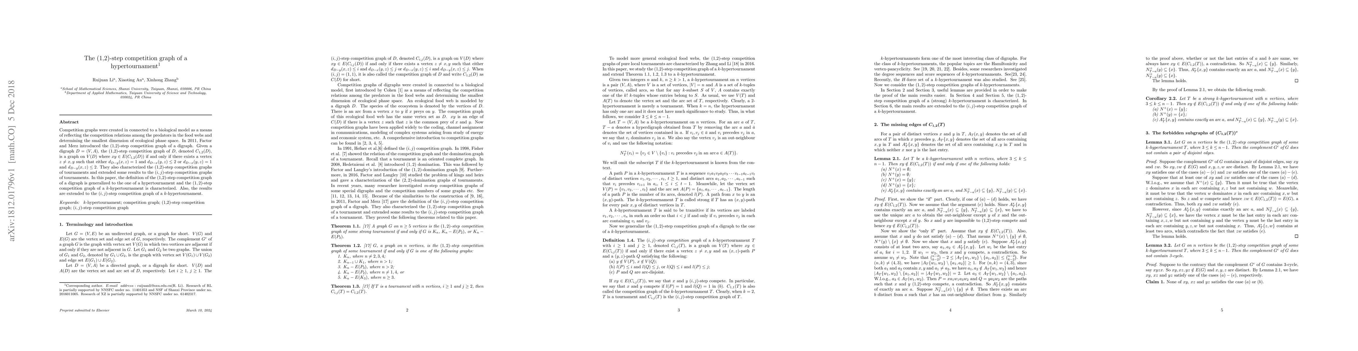 Competition graphs were created in connected to a biological model as a means of reflecting the competition relations among the predators in the food webs and determining the smallest dimension of ecological phase space. In 2011, Factor and Merz introduced the (1,2)-step competition graph of a digraph. Given a digraph $D=(V,A)$, the (1,2)-step competition graph of $D$, denoted $C_{1,2}(D)$, is a graph on $V(D)$ where $xy\in E(C_{1,2}(D))$ if and only if there exists a vertex $z\neq x,y$ such that either $d_{D-y}(x,z)=1$ and $d_{D-x}(y,z)\leq 2$ or $d_{D-x}(y,z)=1$ and $d_{D-y}(x,z)\leq 2$. They also characterized the (1,2)-step competition graphs of tournaments and extended some results to the $(i,j)$-step competition graphs of tournaments. In this paper, the definition of the (1,2)-step competition graph of a digraph is generalized to the one of a hypertournament and the $(1,2)$-step competition graph of a $k$-hypertournament is characterized. Also, the results are extended to the $(i,j)$-step competition graph of a $k$-hypertournament.