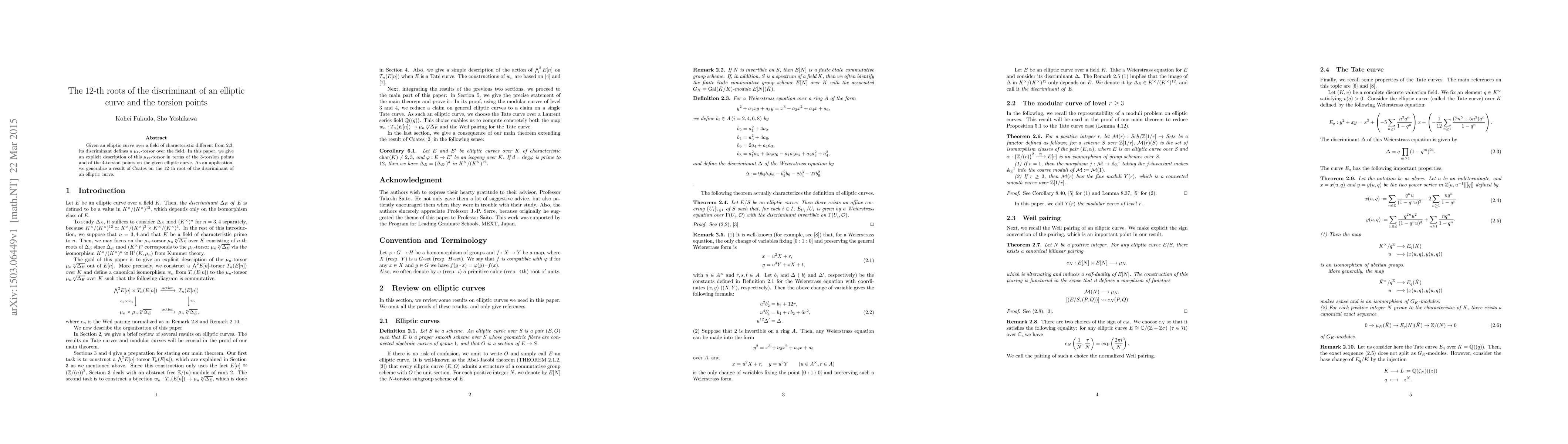 Researchers describe a connection between an elliptic curve's discriminant and its 3-torsion points, offering insights into the 12-th root of the discriminant and its torsion points.