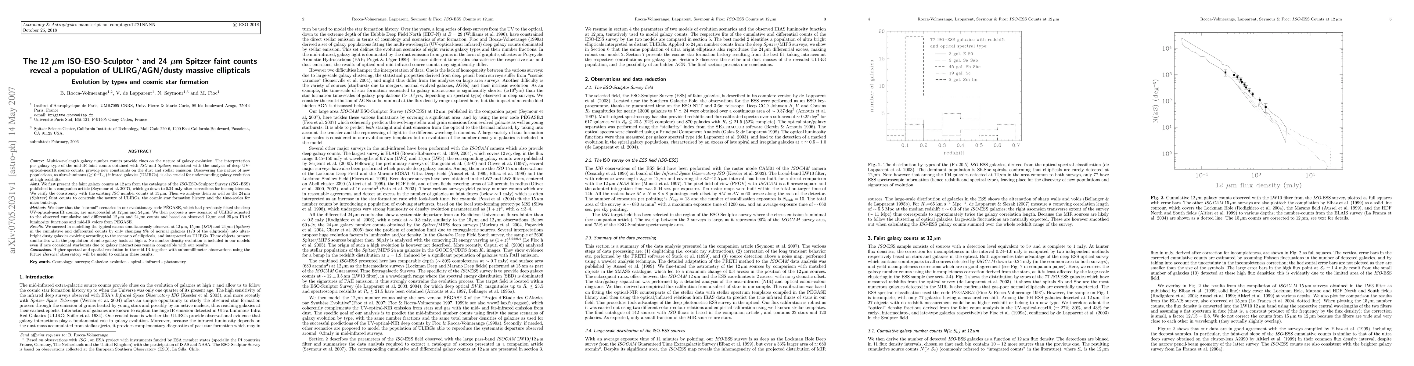 Multi-wavelength galaxy number counts provide clues on the nature of galaxy evolution. The interpretation per galaxy type with the new code PEGASE.3 of the 12mu (ISO) and 24mu (Spitzer) faint galaxy counts provide new constraints on the dust and stellar emission. It also reveals the nature of ULIRGs (L/Lsun > 10^12) and informs on the cosmic star formation history and the time-scales for mass build-up. We firstly present the faint galaxy counts at 12um derived from the catalogue of the ISO-ESO-Sculptor Survey (ISO-ESS) in a companion paper (Seymour et al. 2007) which go down to 0.24 mJy after corrections for incompleteness. We check that they are consistent with ISO number counts at 15um. Secondly we show that the ``normal'' scenarios which fit the deep UV-optical-near-IR counts with PEGASE.2 (Fioc et al. 1999), are unsuccessful in modelling the strong excess simultaneously observed in the cumulative and differential counts at 12um, 15um and 24um. Based on observed 12mu and 25mu IRAS luminosity functions and optical/mid-IR colors, we finally succeed in modelling cumulative and differential counts by only changing 9% of normal galaxies (1/3 of the ellipticals) into ultra-bright dusty elliptical galaxies, interpreted as ULIRGs. This ULIRG population has similarities with high-z radio-galaxy hosts. No number density evolution is included. The Herschel observatory will hopefully confirm these results.