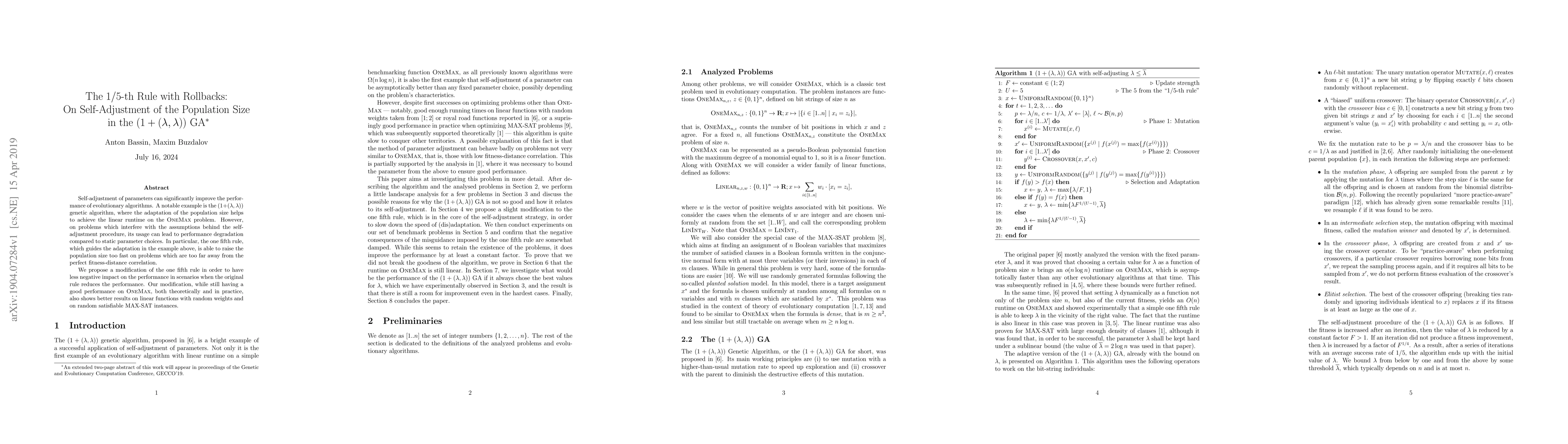 Self-adjustment of parameters can significantly improve the performance of evolutionary algorithms. A notable example is the $(1+(\lambda,\lambda))$ genetic algorithm, where the adaptation of the population size helps to achieve the linear runtime on the OneMax problem. However, on problems which interfere with the assumptions behind the self-adjustment procedure, its usage can lead to performance degradation compared to static parameter choices. In particular, the one fifth rule, which guides the adaptation in the example above, is able to raise the population size too fast on problems which are too far away from the perfect fitness-distance correlation. We propose a modification of the one fifth rule in order to have less negative impact on the performance in scenarios when the original rule reduces the performance. Our modification, while still having a good performance on OneMax, both theoretically and in practice, also shows better results on linear functions with random weights and on random satisfiable MAX-SAT instances.