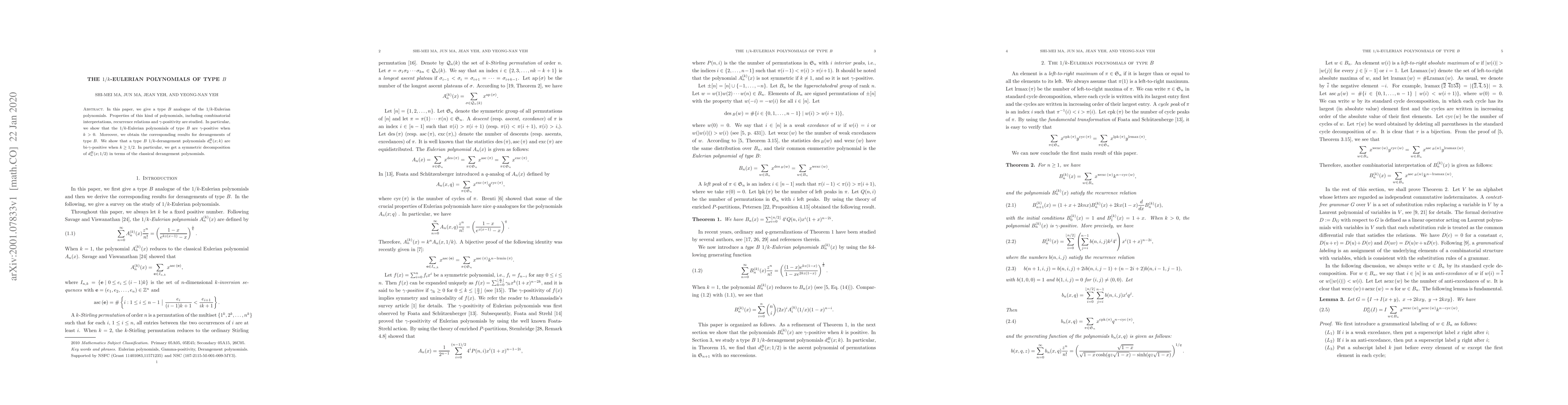 In this paper, we give a type B analogue of the 1/k-Eulerian polynomials. Properties of this kind of polynomials, including combinatorial interpretations, recurrence relations and gamma-positivity are studied. In particular, we show that the 1/k-Eulerian polynomials of type B are gamma-positive when $k>0$. Moreover, we obtain the corresponding results for derangements of type B. We show that a type B 1/k-derangement polynomials $d_n^B(x;k)$ are bi-gamma-positive when $k\geq 1/2$. In particular, we get a symmetric decomposition of $d_n^B(x;1/2)$ in terms of the classical derangement polynomials.